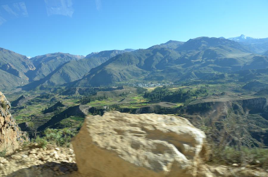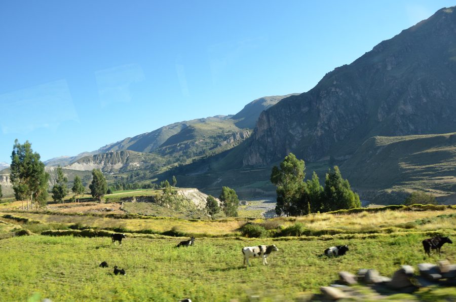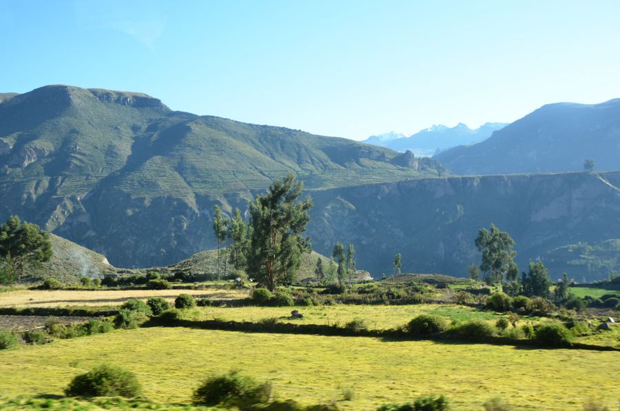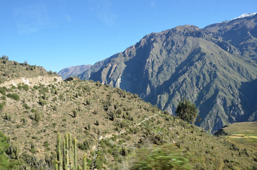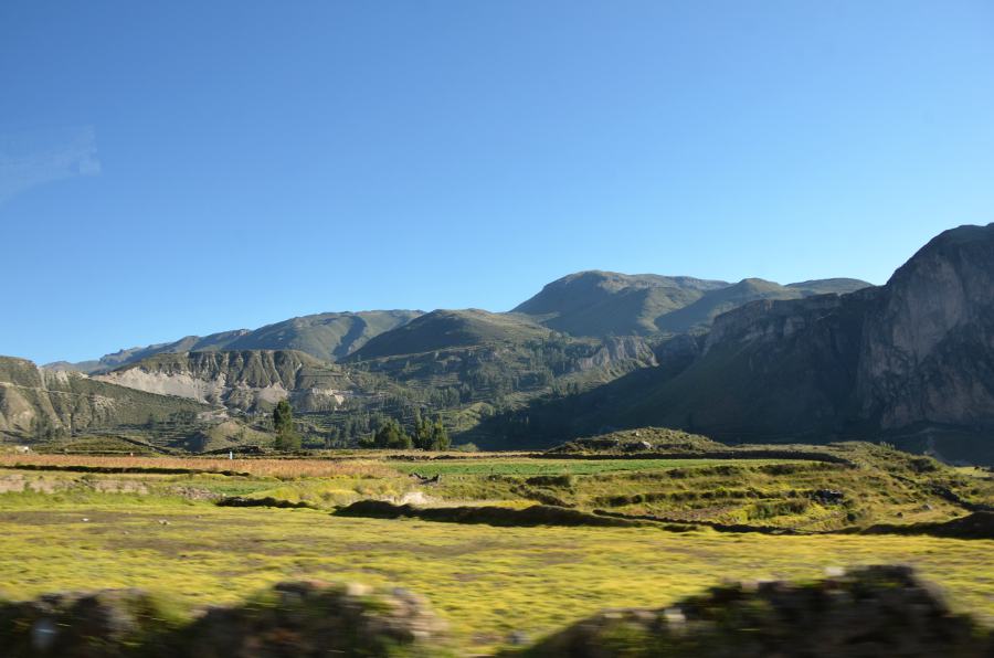 Pour ces deux jours d’excursion, nous sommes une vingtaine de courageux à tenter l’expérience, l’un des treks les plus durs du Pérou. Derrière la vitre du bus, les paysages se succèdent. La route jusqu’à Chivay (150 km environ) est en parfait état, mais truffée de camions lents et surchargés.