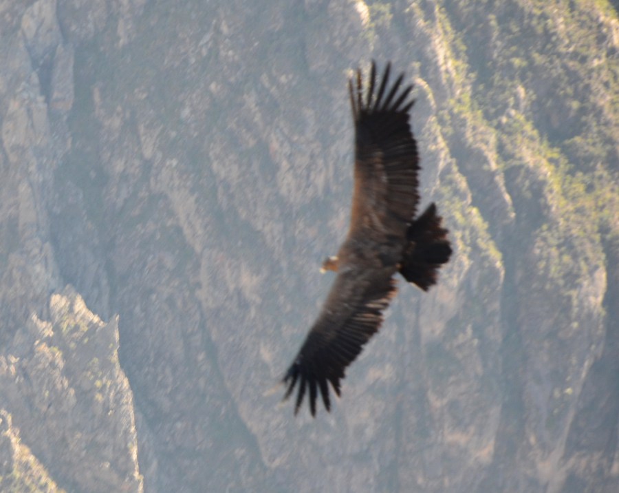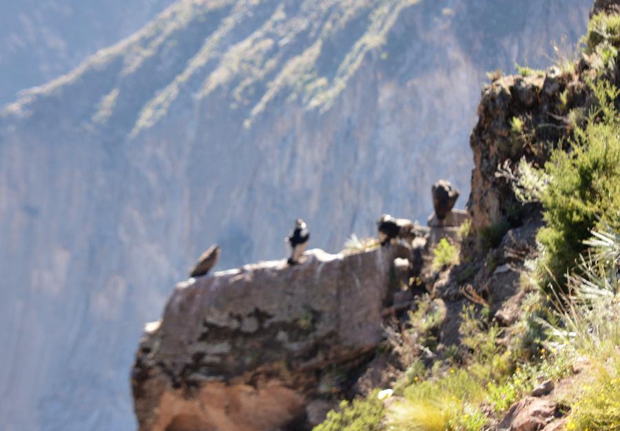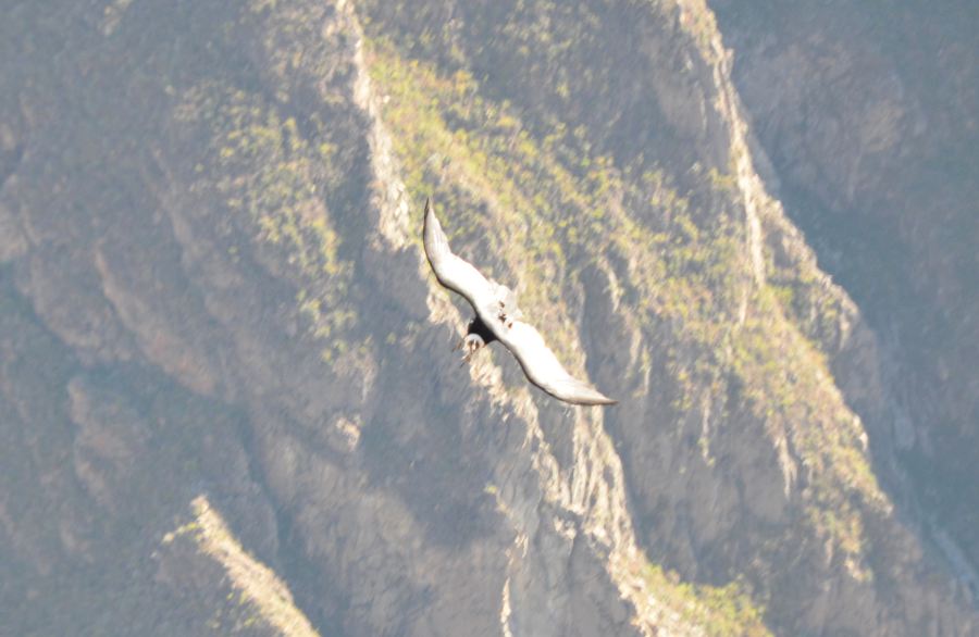 La Croix du condor est bien le meilleur endroit du canyon pour observer le vol de ces oiseaux mythiques. Les condors apprécient tout particulièrement les courants d’air chaud qui circulent à cet endroit le matin. Coup de chance, ils sont ce matin une bonne vingtaine à avoir fait de ce lieu leur terrain de jeu.