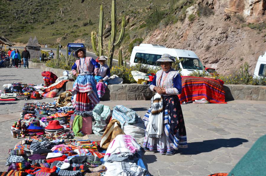 La dimension culturelle et humaine est tout aussi captivante. Le canyon est habité par des communautés collaguas et cabanas, qui perpétuent des traditions agricoles ancestrales. Les terrasses de culture pré-incas, encore utilisées aujourd’hui, sculptent la montagne sur des centaines de mètres de dénivelé. Les villages comme Chivay ou Yanque conservent leurs églises coloniales et leurs marchés artisanaux, où les costumes brodés des habitants témoignent d’une identité préservée.