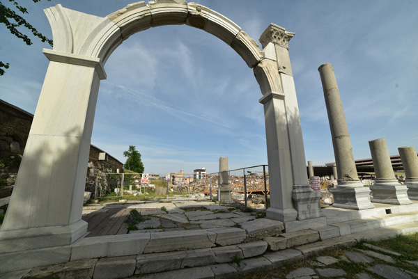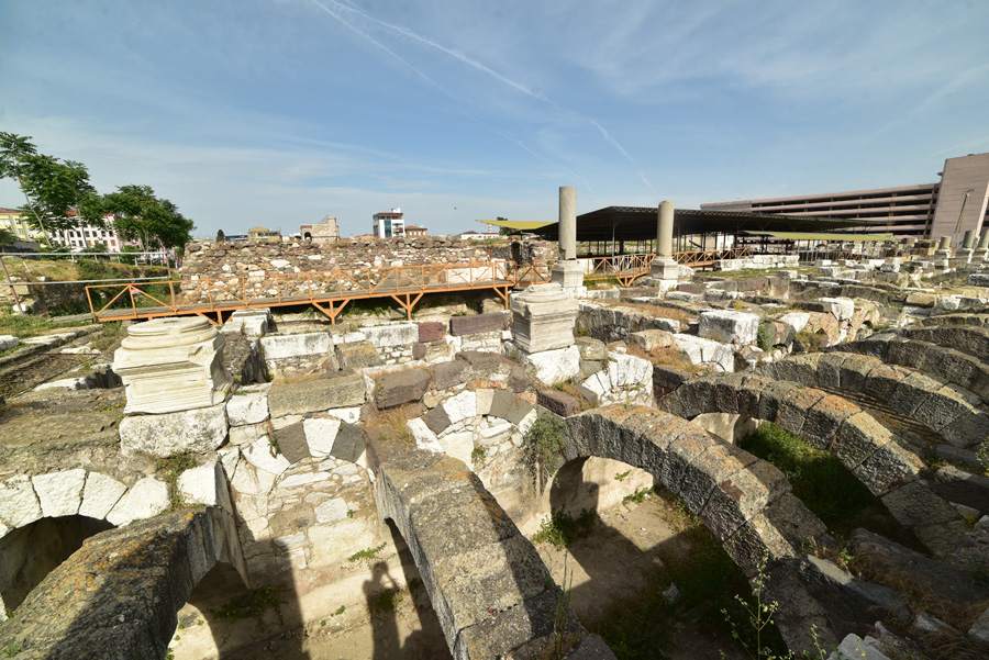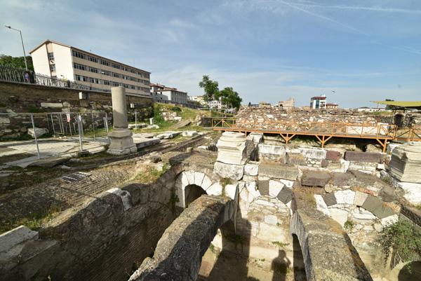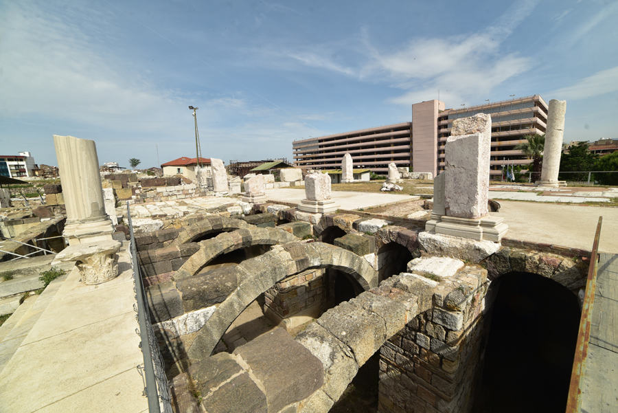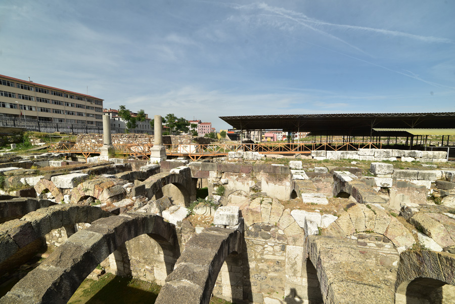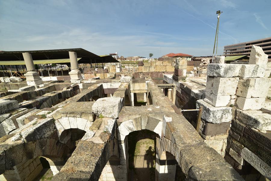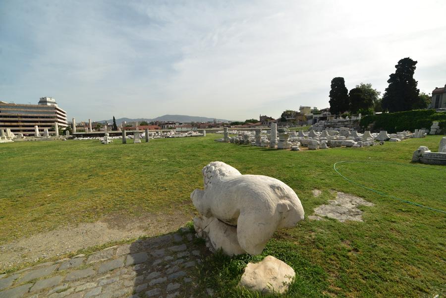 Devant moi s’étendent les ruines de la partie occidentale de la place, laquelle était bordée par une grande basilique au nord et des portiques à l’Est et à l’Ouest. Centre de la cité, l’Agora fut fondée par les Grecs sur les pentes de la colline de Kadifekale, puis reconstruite par les Romains après le tremblement de terre de 178.