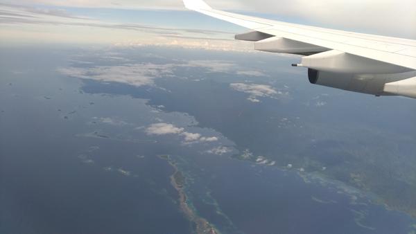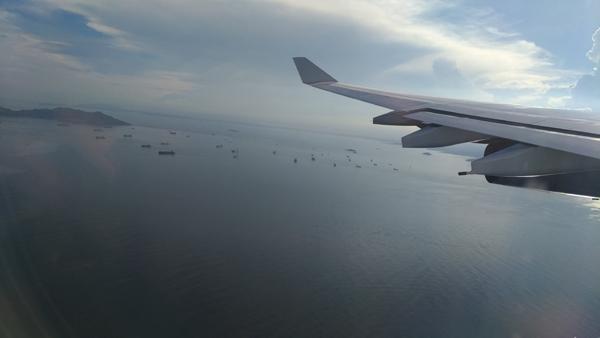Bon, je n’ai pas trop l’habitude de prendre des photos avec mon portable, ni encore moins des photos aériennes prises depuis le hublot de ma place, mais là, je suis trop curieux pour ne pas tenter d’apercevoir le fameux Canal de Panama.