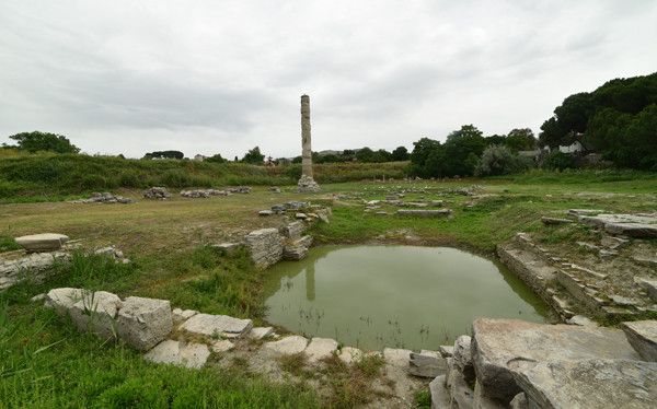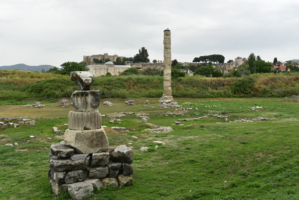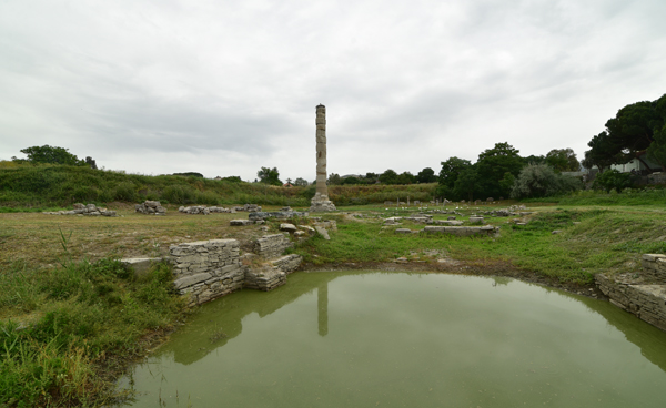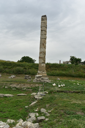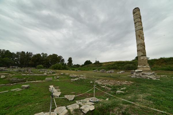 De l’ancien temple d’Artémis élevé ici en l’honneur de la déesse tutélaire de la cité antique d’Éphèse, il ne reste que quelques soubassements, à peine visibles, quand ils ne sont pas recouverts par des eaux d’infiltration.