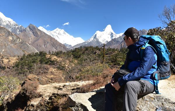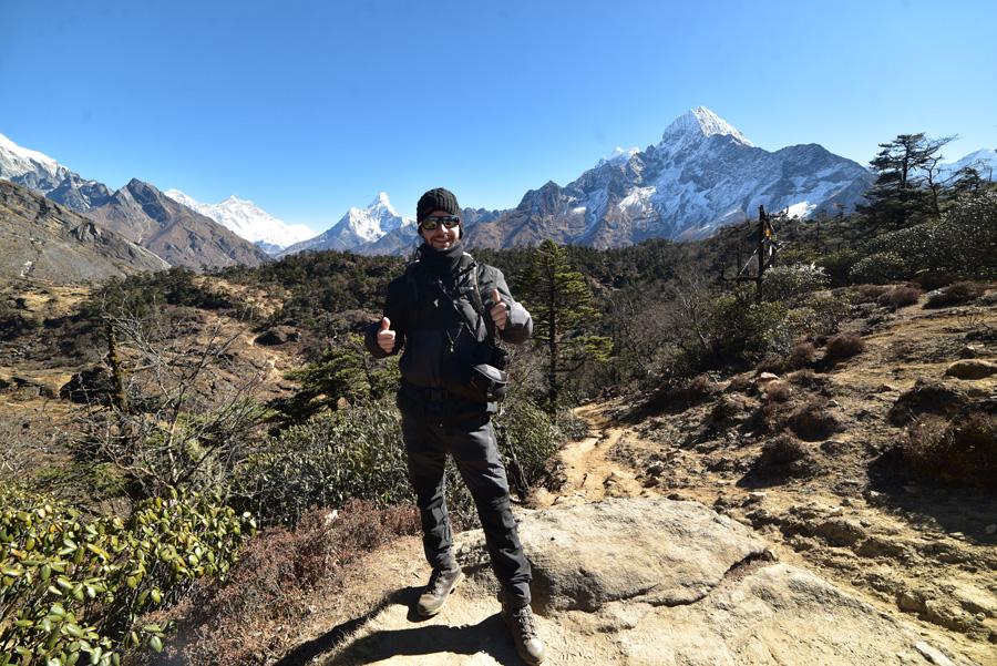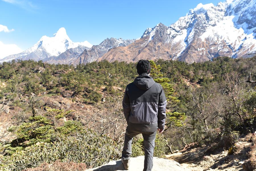 De retour au sommet du mont Khumjung, on fait encore une halte pour profiter de la vue sensationnelle sur tous les sommets himalayens.