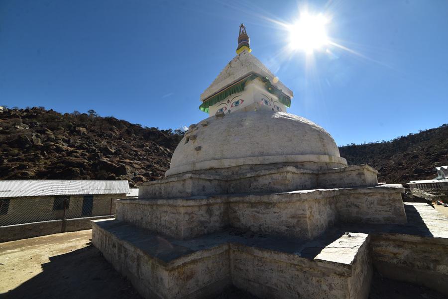 On passe de nouveau le dernier stupa du village avant de plonger de nouveau dans la descente qui doit nous ramener vers Namche Bazar.