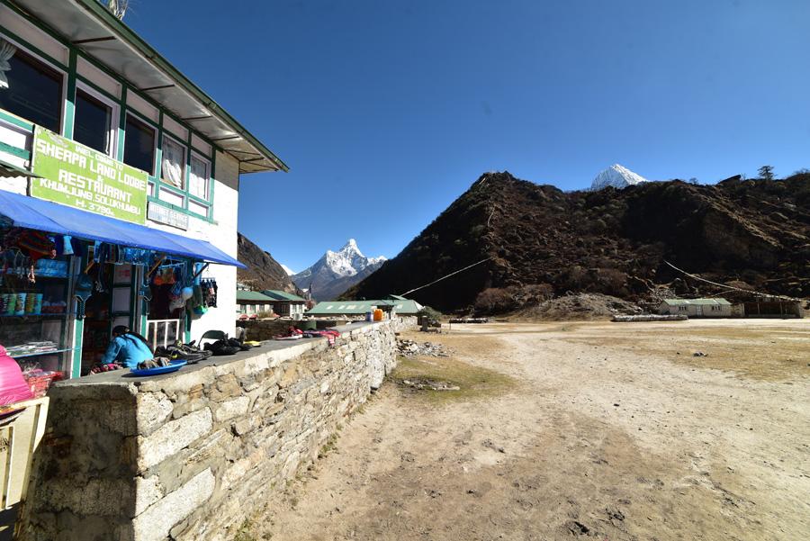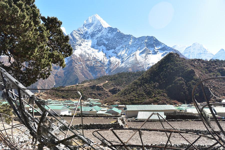 On avance un peu plus profondément dans le village. La vue sur l’Everest et les monts qui l’accompagnent est saisissante.