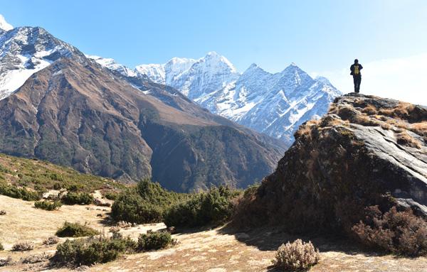 Lundi 13 novembre. Au bout de vingt bonnes minutes de marche et d’ascension, nous arrivons enfin au sommet du mont Khumjung (3.870 m). La première grande émotion de ce long trek à travers la chaîne de l’Himalaya. La beauté du paysage est à couper le souffle.