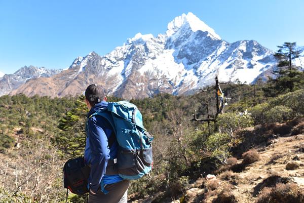 Là-bas, tout là-haut se dressent les sommets de l’Everest, de Lhotse, de Nuptse et d’Ama Dablam. Chaque pas que nous ferons sur le chemin de ce trek nous rapprochera un peu plus de ces géants.