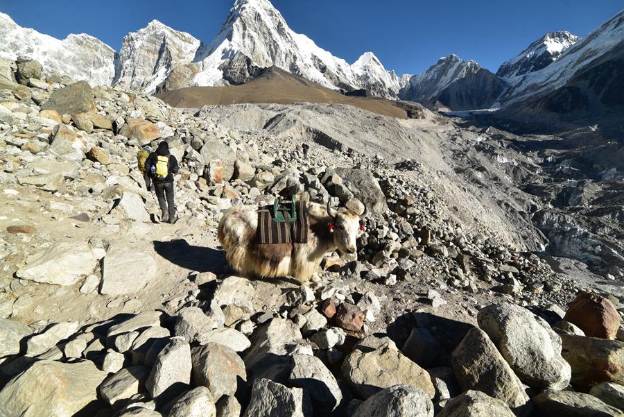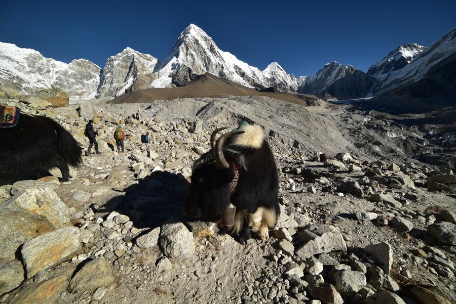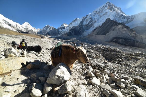 Pas le temps réellement d’en profiter. J’essaie tant bien que mal de suivre le rythme imposé par Sashee. On croise encore des troupeaux de yaks. Certaines bêtes tirent la langue. Ici, on doit être à seulement 52 % d’oxygène… C’est dur. Mais tout va bien. La perspective d’arriver à Gorak Shep et de s’élancer vers l’Everest l’emporte sur toute autre considération. C’est le bonheur. Une sensation de satisfaction absolue. D’aboutissement.