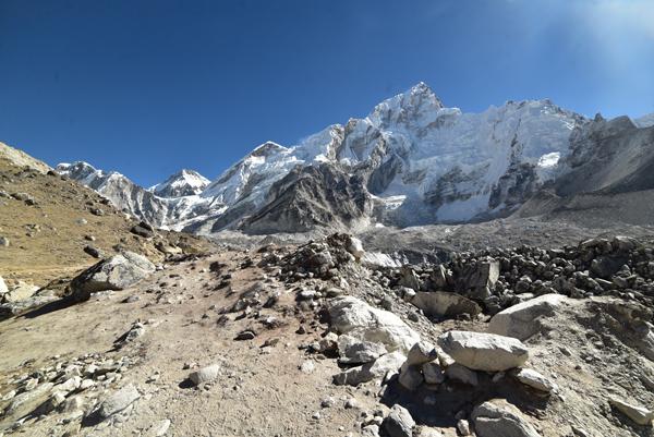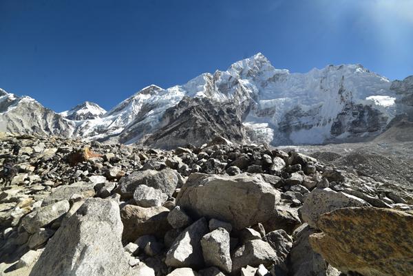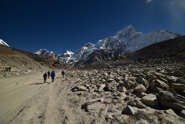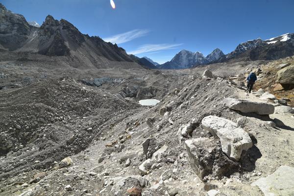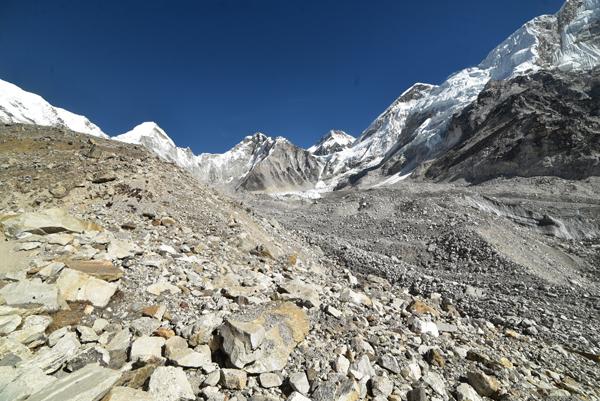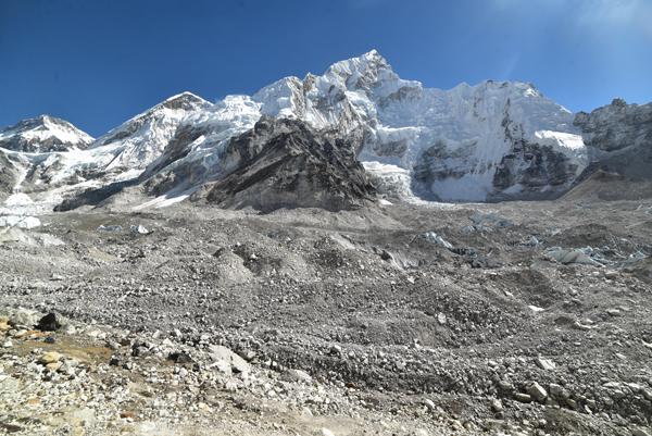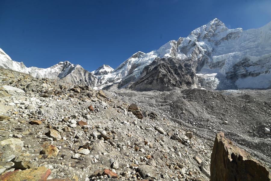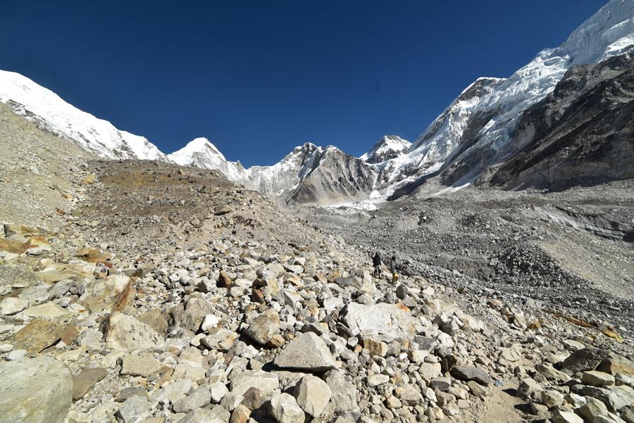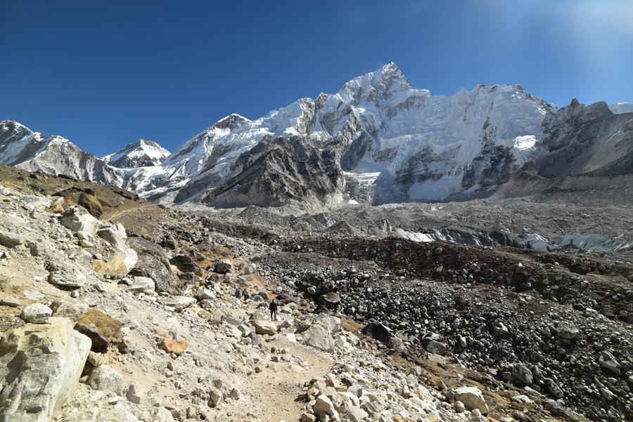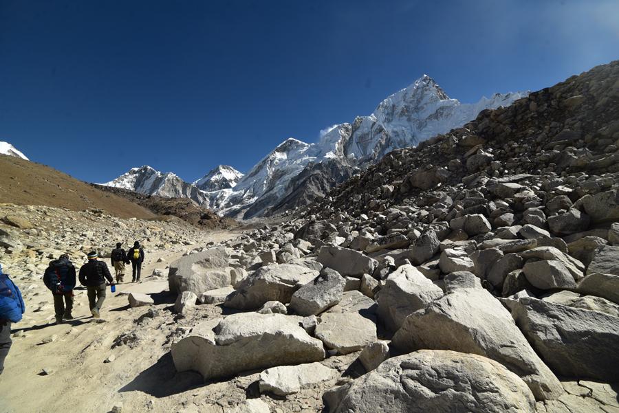La traversée de la moraine et le spectacle du Khumbu Icefall