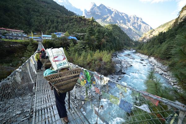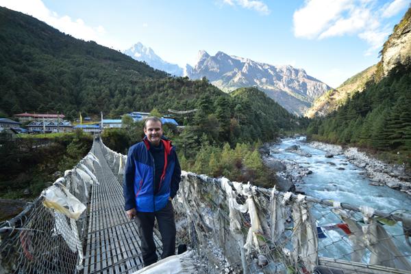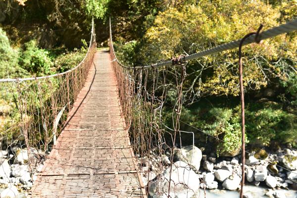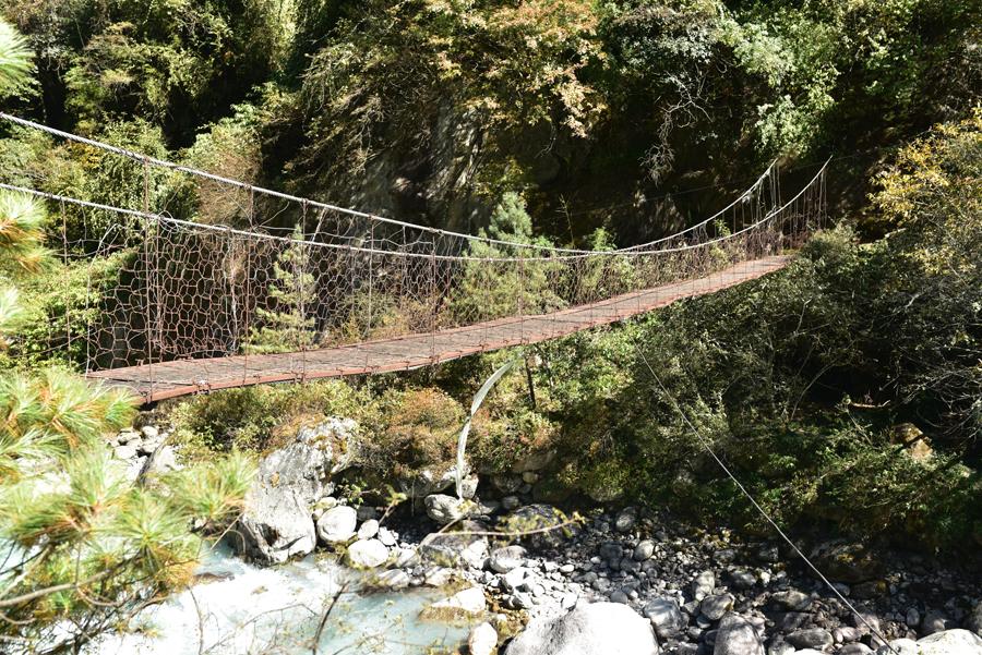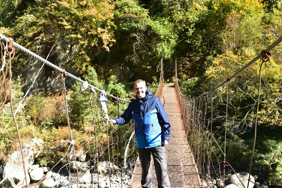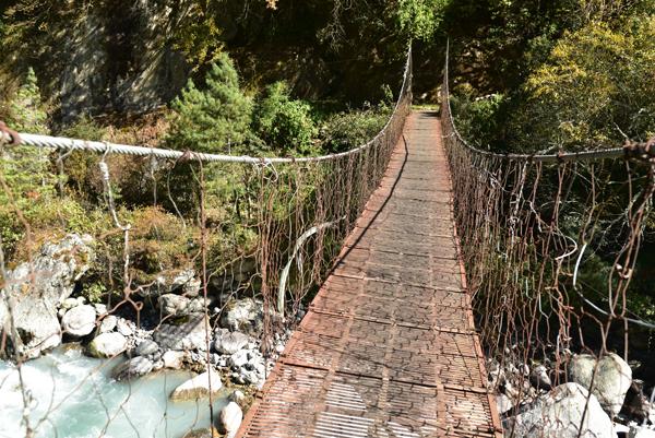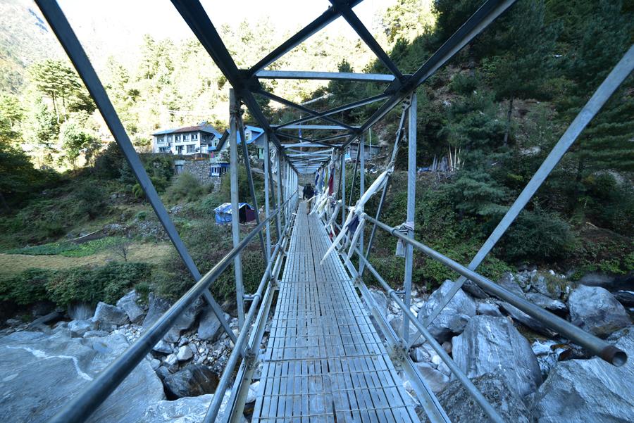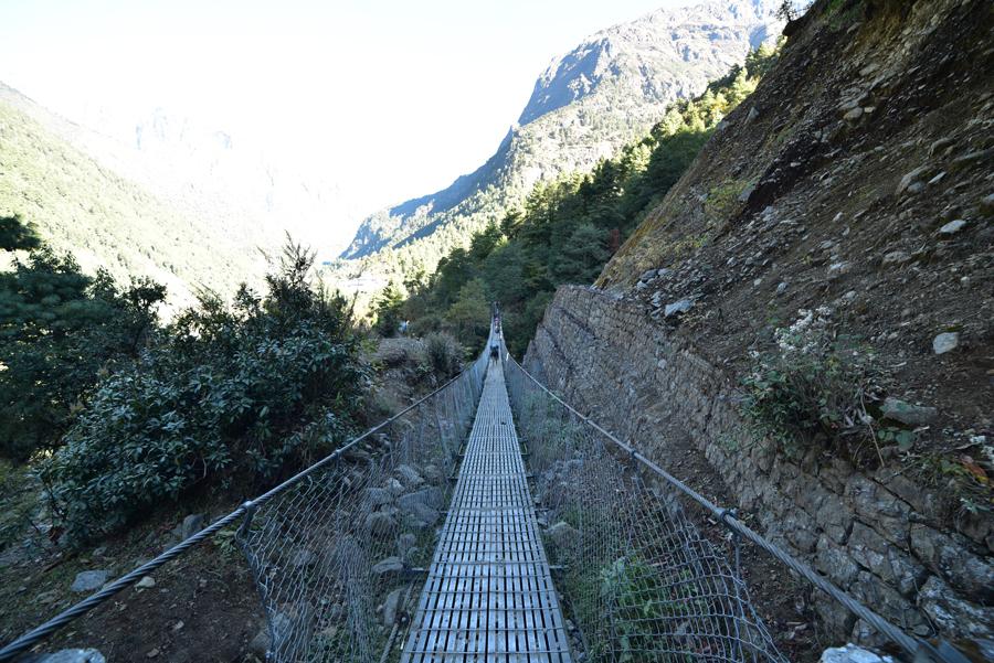 Cerise sur le gâteau, je vais avoir droit à mon premier pont suspendu. Au-dessous de moi, la Dudh Kosi, autrement dit « la rivière de lait ».