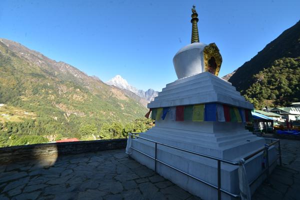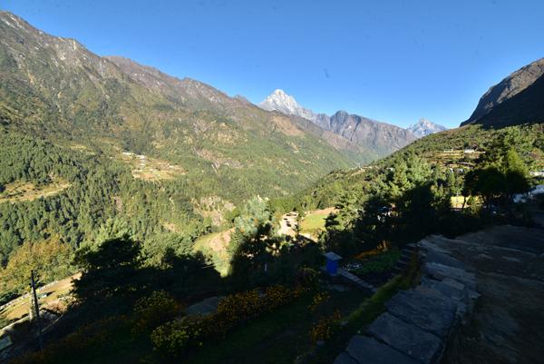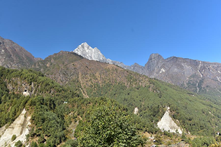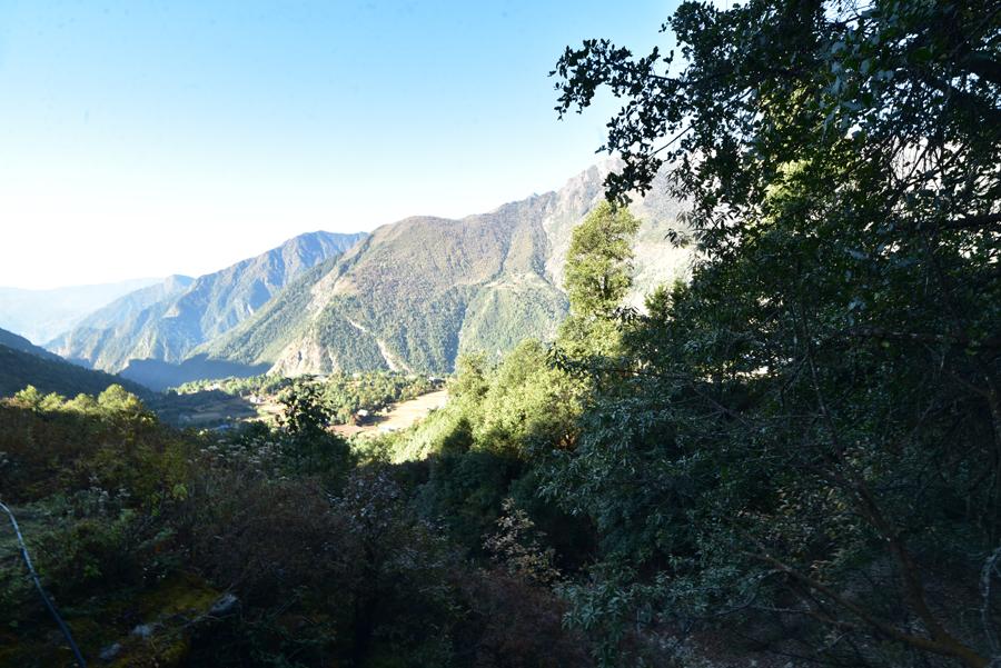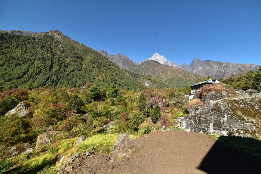 Pour ce premier jour de marche, nous avons vraiment de la chance. Le temps est au beau. Il le restera pendant toute la durée de notre trek. Pas une trace de nuage dans le ciel bleu de l’Himalaya. Je comprends maintenant pourquoi novembre est la période la plus appropriée pour faire un trek au Népal.