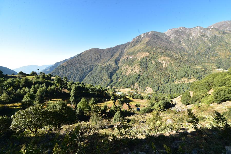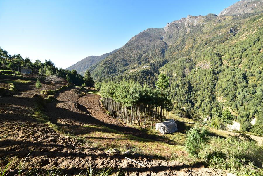 Tout au long du parcours, nous croisons de minuscules petits villages hérissés de lodges et de maisons d’hôtes. Nul besoin d’emporter avec soi une tente. Les flancs de l’Himalaya sont tout à fait aptes à accueillir les trekkeurs. Dans les années 80, au début de l’essor du tourisme dans la région, des glissements de terrain ont eu lieu à cause des déboisements massifs pour construire des hébergements et les chauffer. Aujourd’hui, ce sont les sherpas eux-mêmes qui gèrent les forêts dans le plus profond respect de l’environnement. Pas une coupe d’arbre sans en replanter autant.