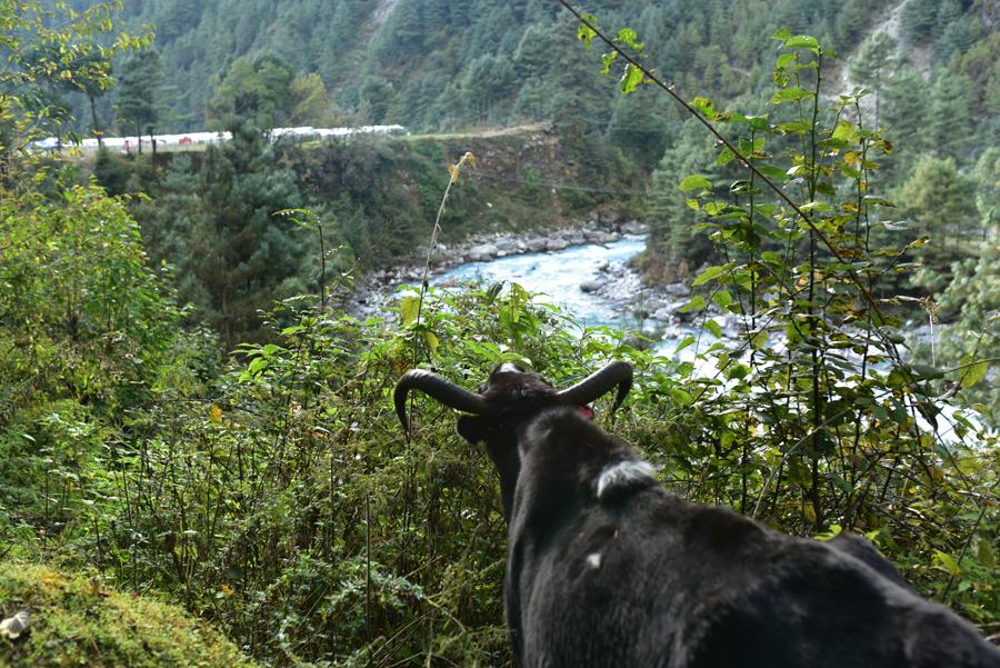 Aujourd’hui, pour notre premier jour, le chemin ne sera pas vraiment difficile : une descente tranquille sur un chemin assez large pour nous rendre jusqu’au premier village sherpa : Phakding.