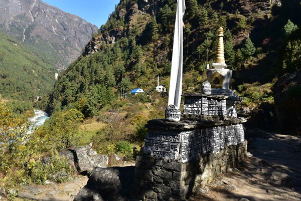 Sur le chemin encore surgissent d’immenses blocs de prières censés éloigner les démons et le mauvais sort. Tout randonneur se doit traditionnellement de passer à gauche du monument. Les dieux sont alors respectés.