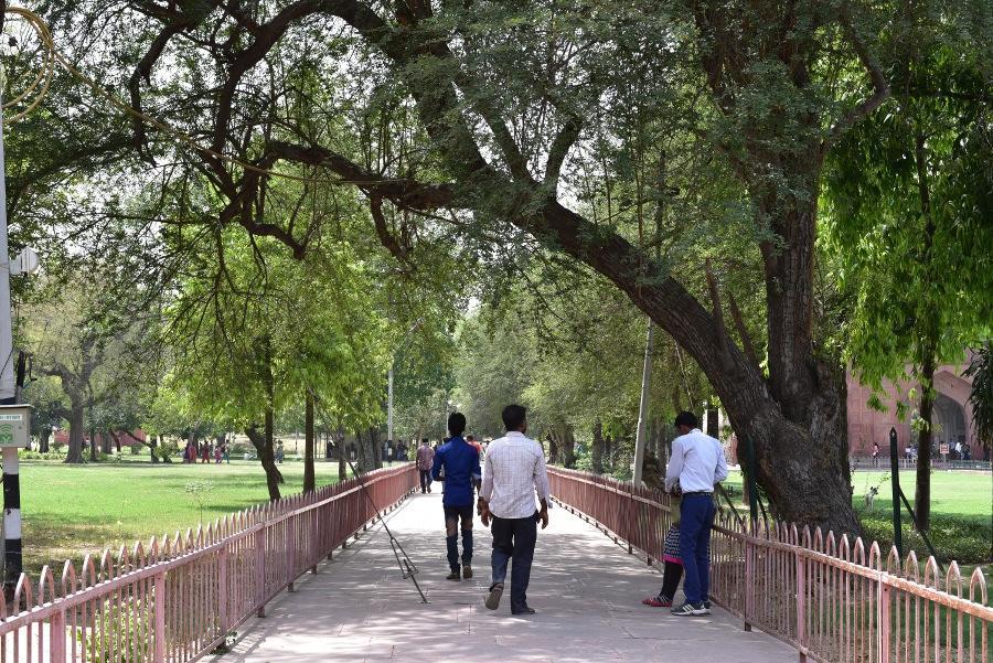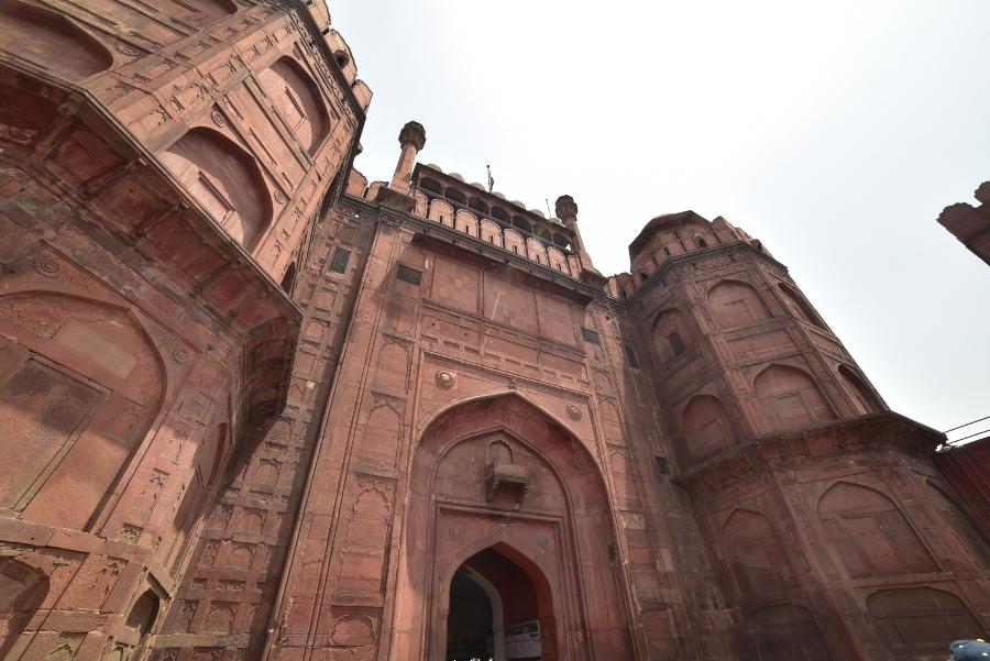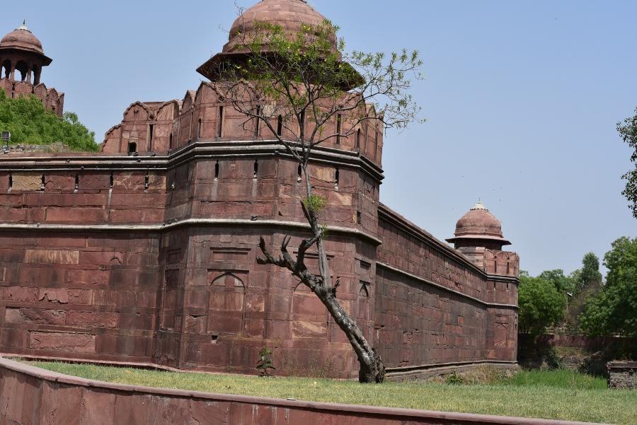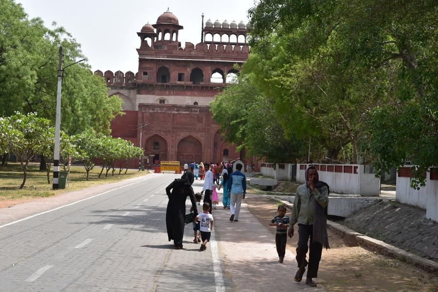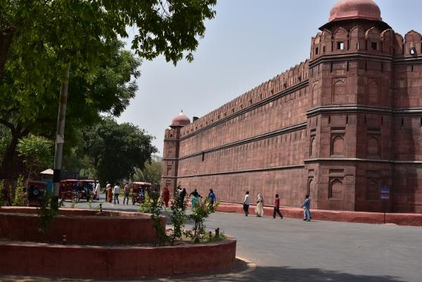 C’est à une centaine de mètres de cette porte que Sonu, mon guide, me laisse. Je dois donc remonter à pied la longue avenue qui mène à Lahore Gate. Au pied des murailles rouges de Red Fort, je comprends aussitôt l’importance de cette forteresse. Les tours de guêt et les remparts se succèdent sans discontinuer. Les arbres monumentaux se disputent les sommets avec les chemins de garde.
