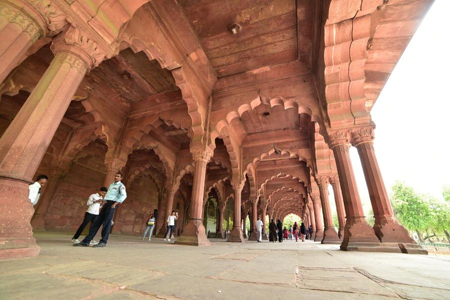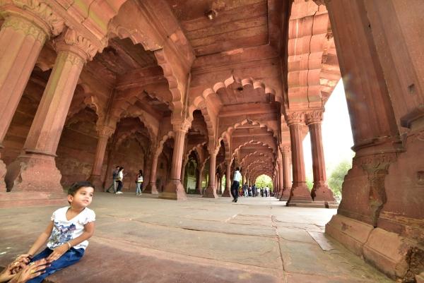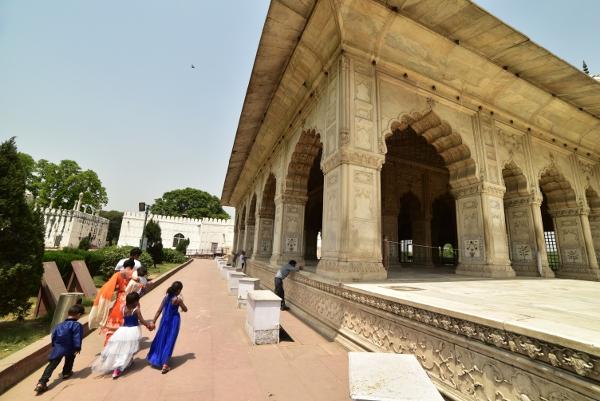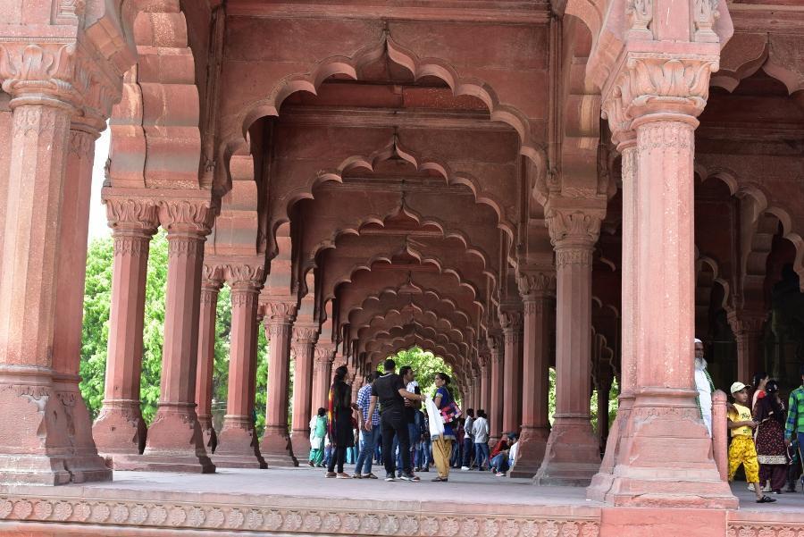 Impasse encore sur l’Indian War Museum (aucun intérêt). La cour donne par contre le Diwan-i-Am, le hall des audiences publiques, ses colonnades et ses arcades de grès rouge.