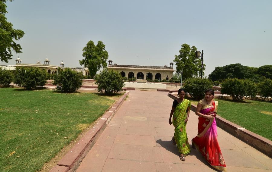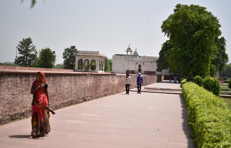 Au milieu des immenses jardins du Fort rouge de l’empereur moghol se dressent une multitude de pavillons, édifices blancs en grande partie dépouillés de leurs pierres précieuses incrustées dans la pierre (volées bien entendu…).