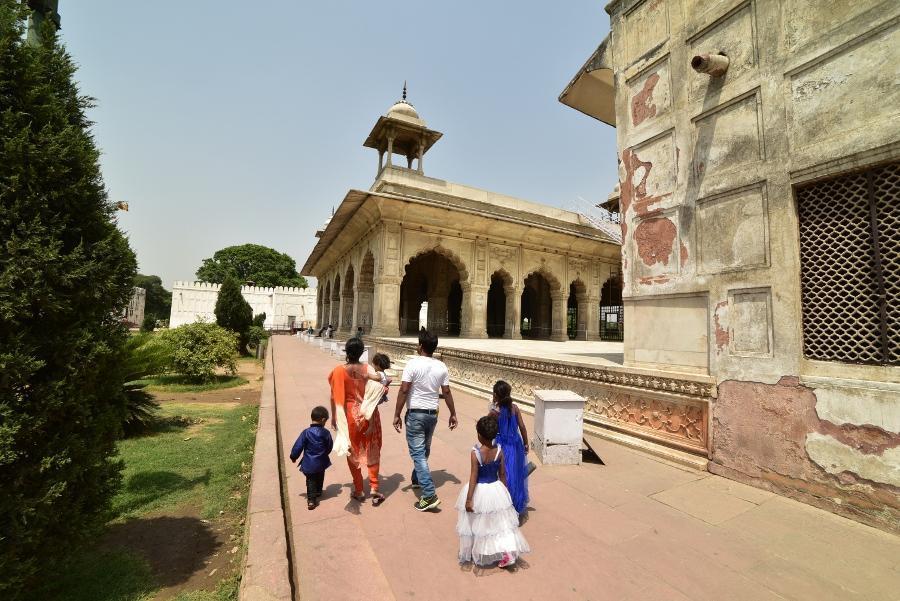 La visite commence par l’imposante porte de Lahore, l’entrée principale, qui mène à un marché couvert animé, le Chatta Chowk. En poursuivant, on accède au cœur du complexe par la porte de Delhi. Le parcours principal suit un axe menant aux édifices majeurs : le Diwan-i-Am (hall des audiences publiques) où l’empereur rendait la justice, le Diwan-i-Khas (hall des audiences privées) où se trouvait le légendaire trône du Paon, et les jardins et pavillons des appartements privés, comme le Rang Mahal. Les bâtiments, principalement en grès rouge et marbre, illustrent le faste de l’architecture moghole. Prévoyez au moins 2 à 3 heures pour une exploration complète.