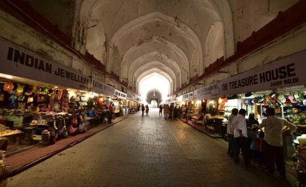 Passé la porte de Lahore, il faut alors traverser une longue galerie peuplée de boutiques d’artisanat. Il s’agit de Chatta Chowk. Chowk = marché. Chouette alors, j’ai appris un mot en hindou !