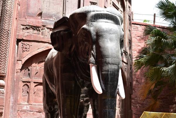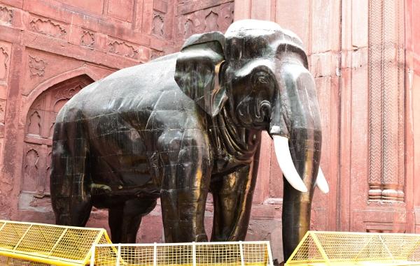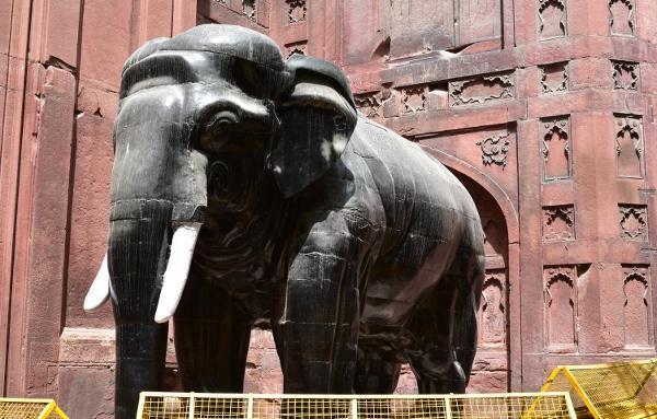 À la sortie du fort, c’est une belle surprise qui m’attend. De superbes statues d’éléphants encadrent la porte.