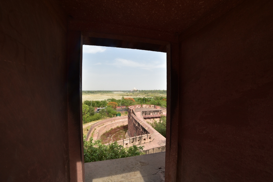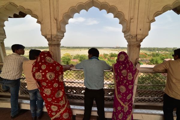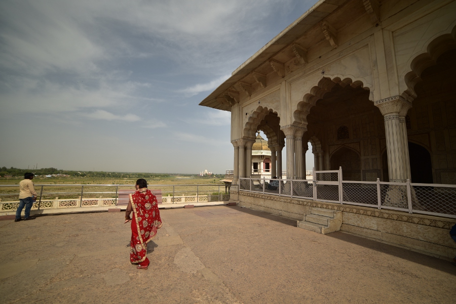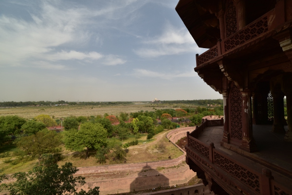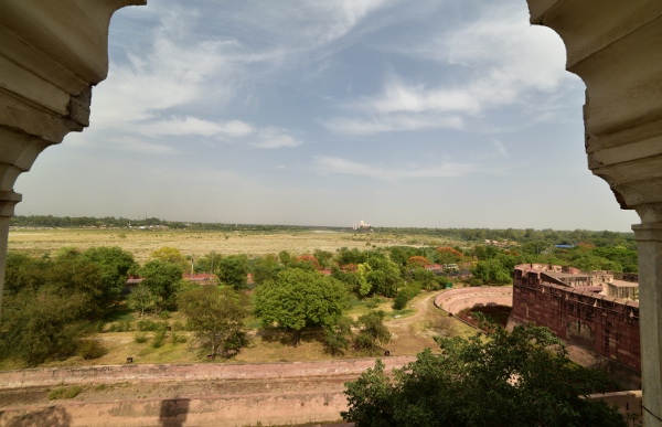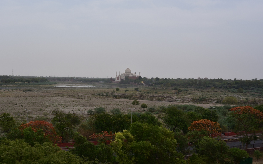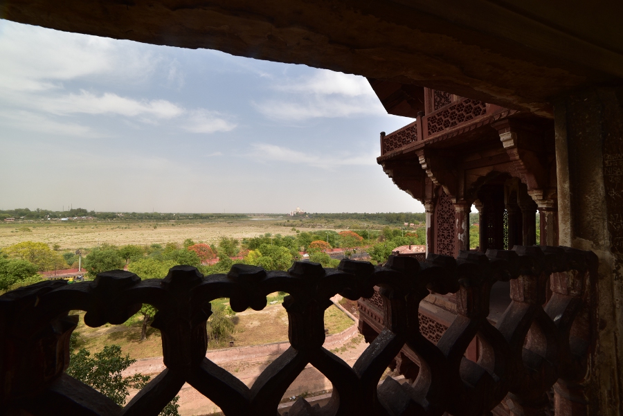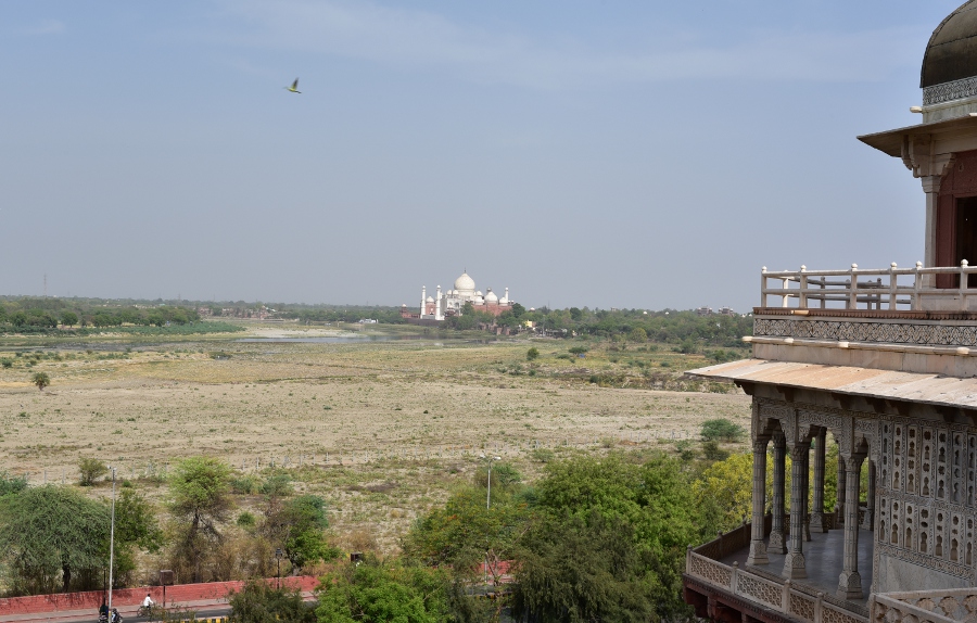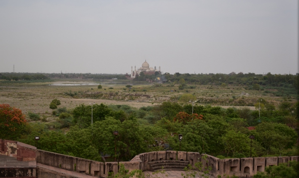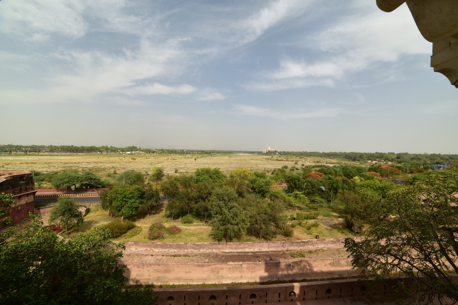 De là, on a encore une belle vue sur la rivière Yamuni, et au loin, sur le Taj Mahal.
