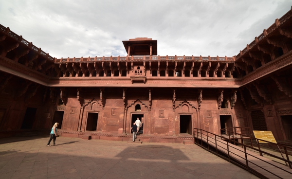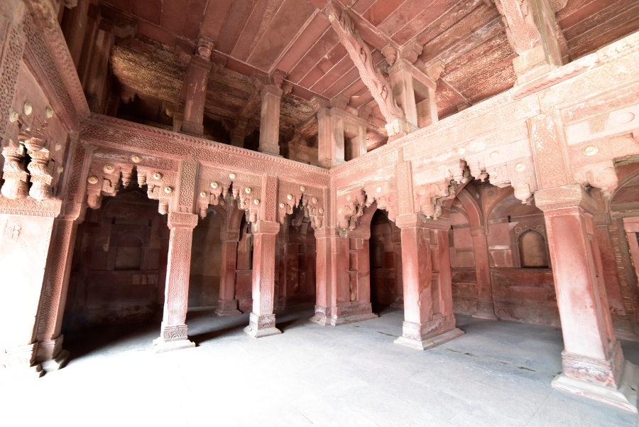 Le Diwan-i-Khas, ou le palais des audiences privées, était l’endroit où l’empereur mogholais recevait les courtisans et des invités de l’État. On l’appelait aussi Shah Mahal. Il se compose d’une cour centrale rectangulaire, entourée d’une série d’arcs qui s’élèvent sur deux étages.