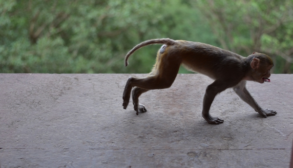Au sommet du palais, entre les ouvertures, on peut observer les nombreux singes qui ont fait du palais leur demeure.