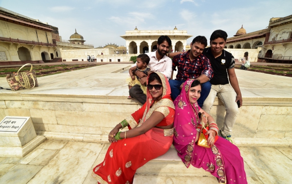 Le long du mur d’enceinte, la foule est nombreuse à vouloir apercevoir son petit coin de Taj Mahal.
