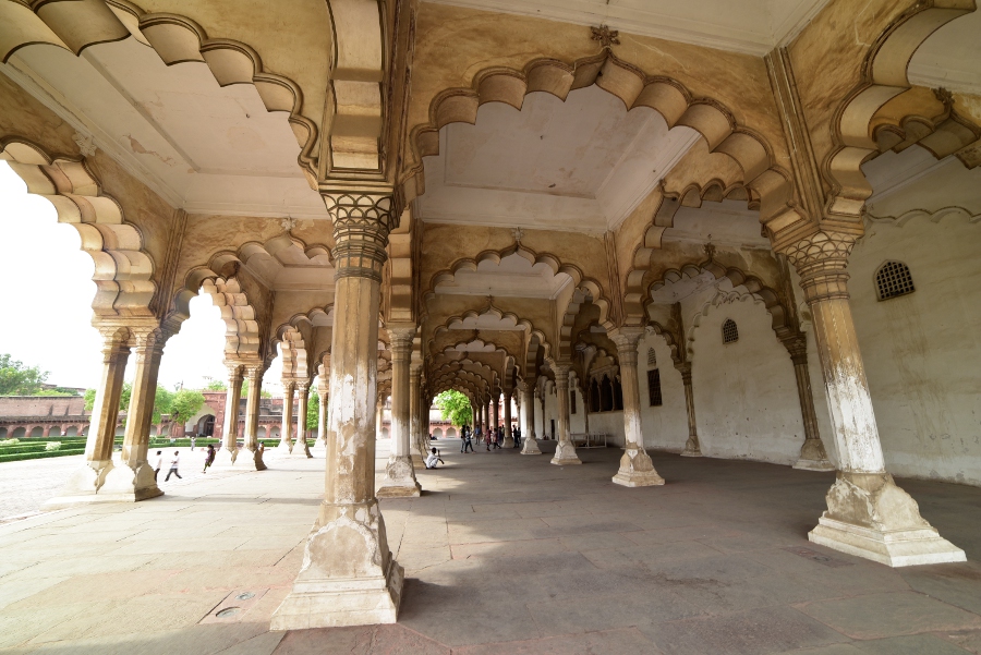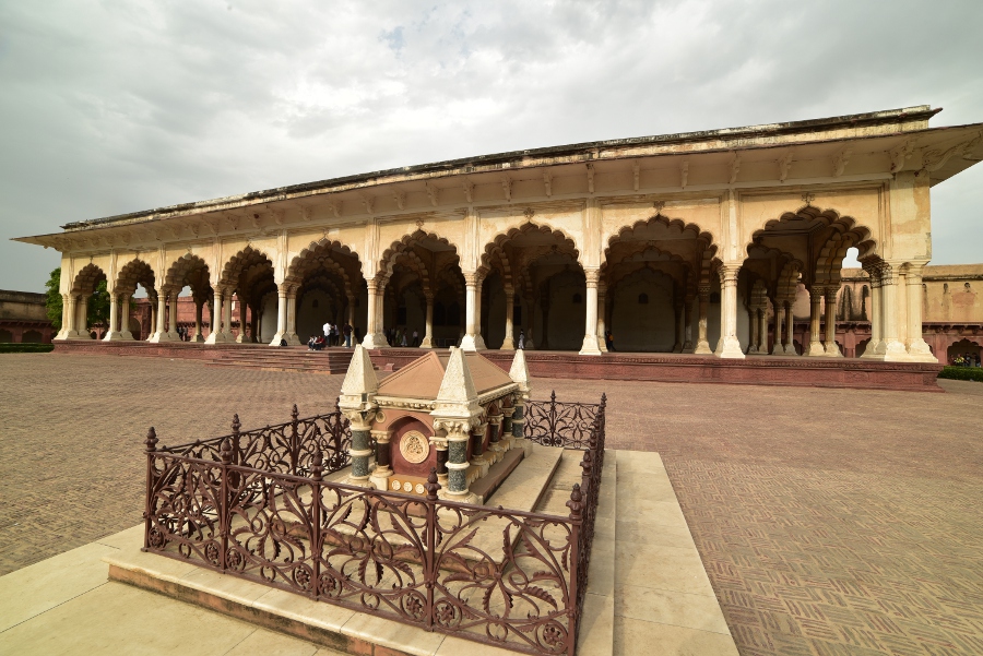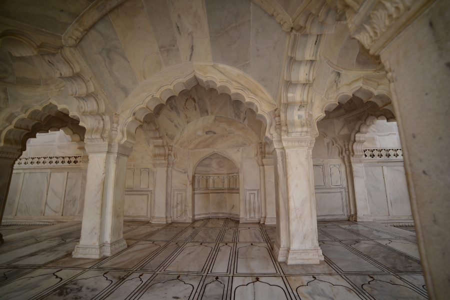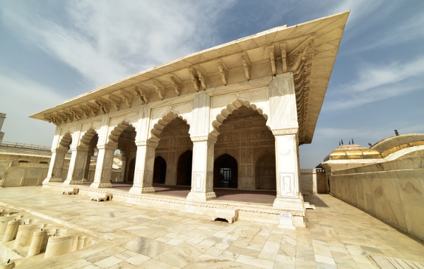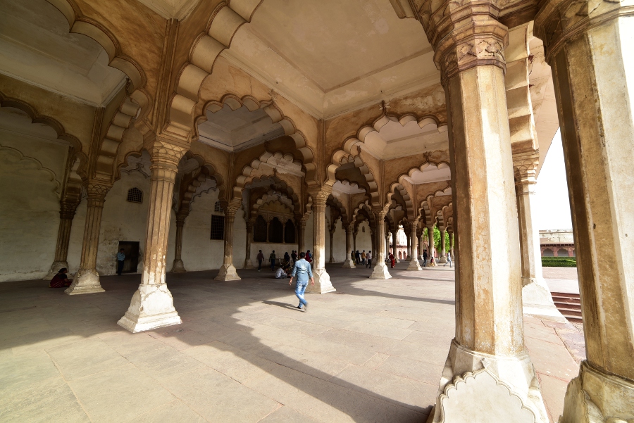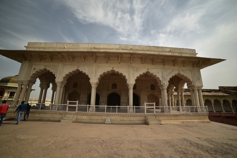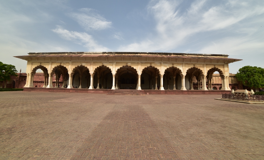 Flanquant le plus grand parterre du fort, le Diwan-i-Am, la salle des audiences publiques est une belle loge surélevée aux multiples arcades. C’est ici que l’empereur moghol s’adressait au peuple et à la noblesse.