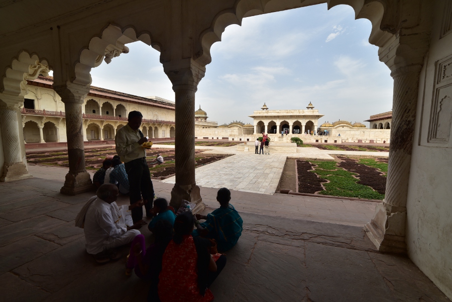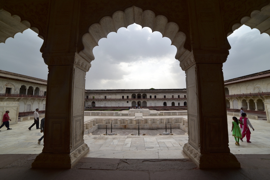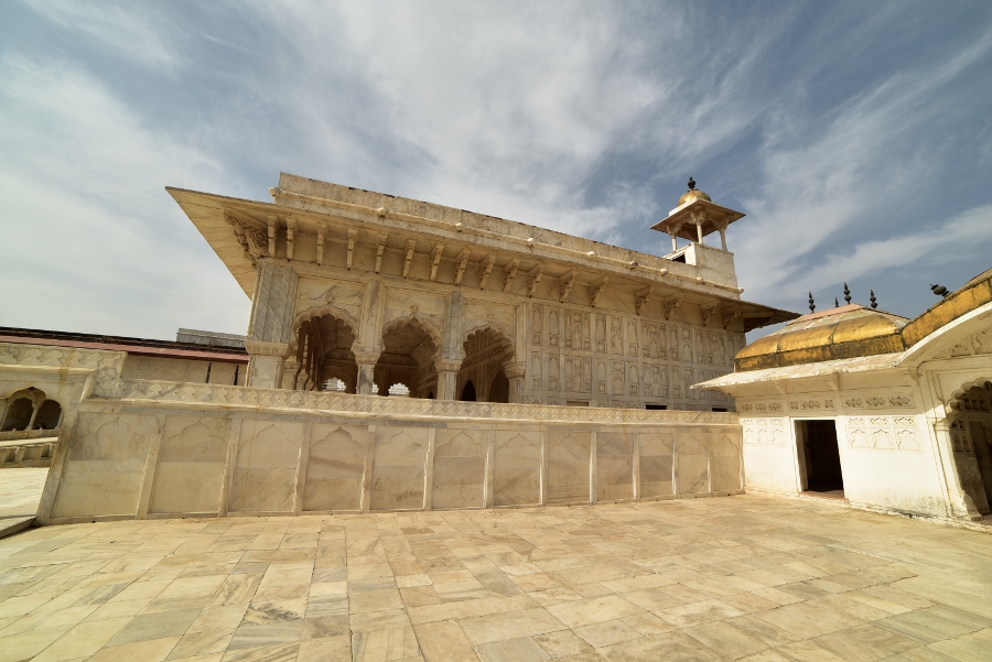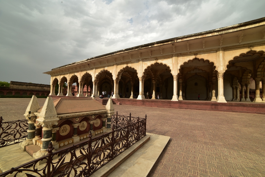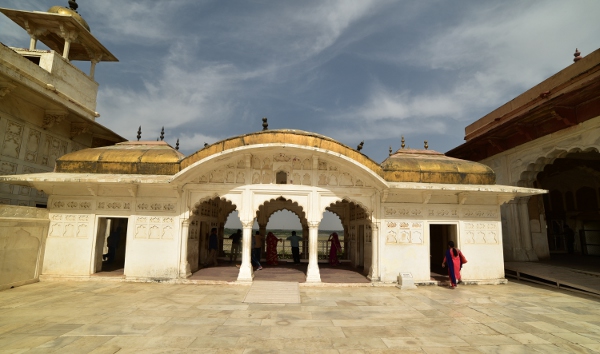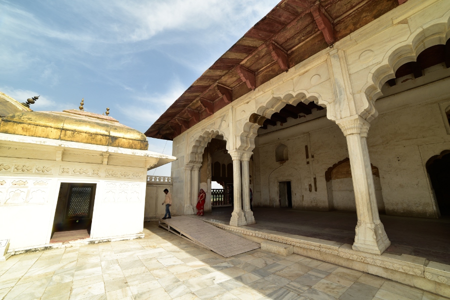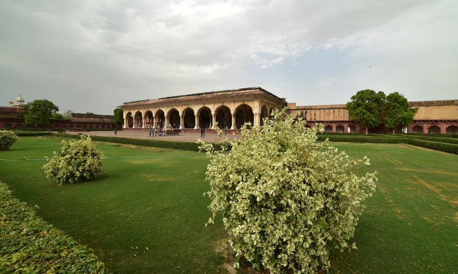 Flanquant le plus grand parterre du fort, le Diwan-i-Am, la salle des audiences publiques est une belle loge surélevée aux multiples arcades. C’est ici que l’empereur moghol s’adressait au peuple et à la noblesse.