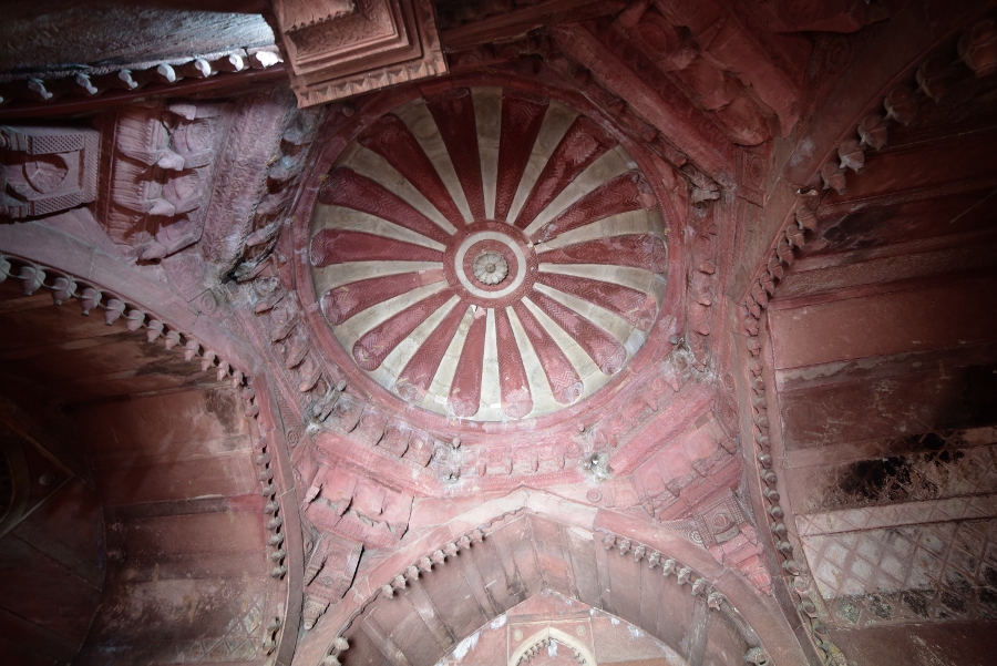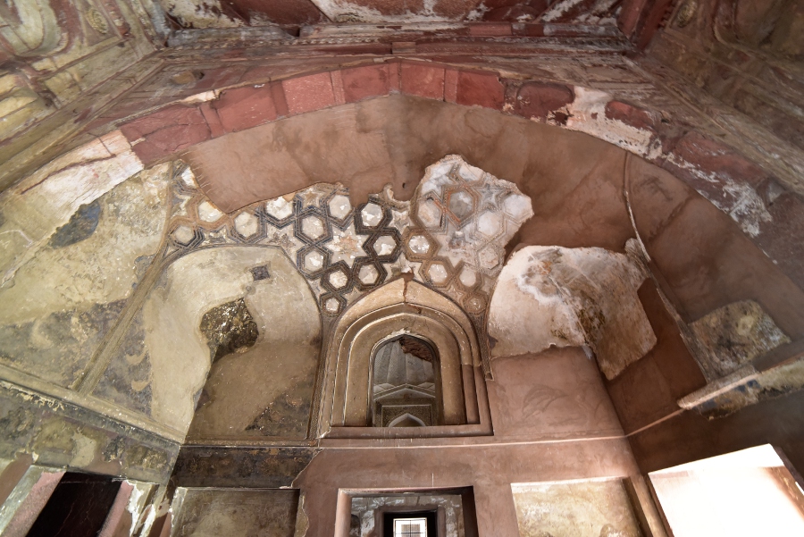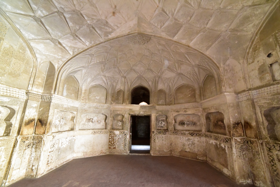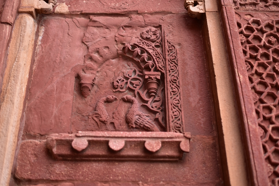 Toujours est-il que le Shah Burj possédait autrefois un plafond peint en bleu et or. Il est le plus bel exemple de sculpture du fort… Ce qui me fait croire que je suis sur la bonne piste !