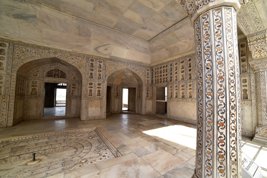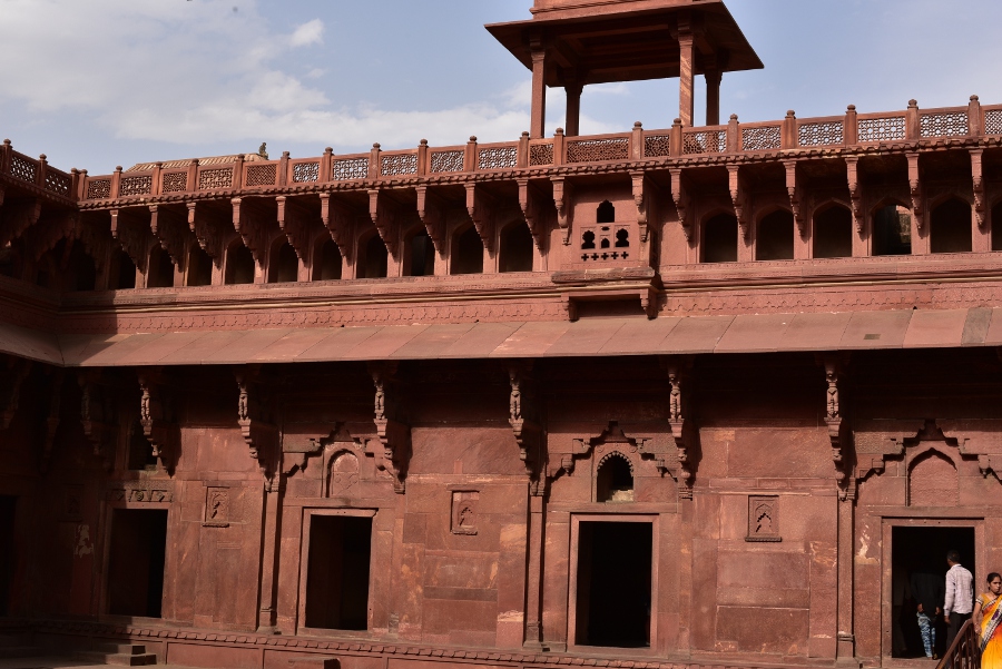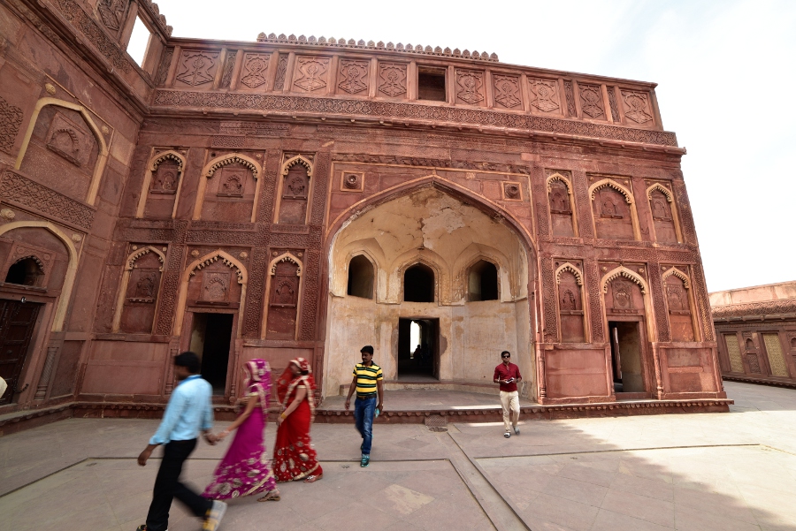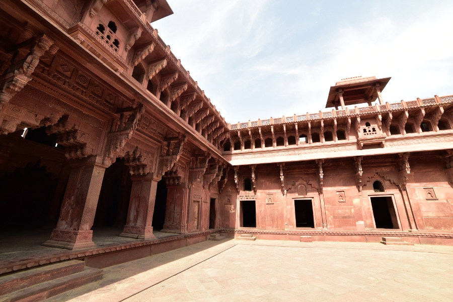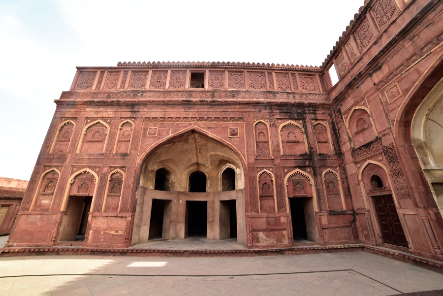 Contrairement au Taj Mahal, dédié au deuil et à l’éternité, le Jehangiri Mahal était un lieu de vie, de pouvoir et de harem. Il permet de comprendre le fonctionnement de la cour impériale. On y découvre les quartiers des femmes de la famille royale, les salles d’audience privée et les balcons qui offraient aux habitants une vue sur la rivière Yamuna. C’est imaginer les intrigues de cour, les fêtes somptueuses et la vie quotidienne qui animaient ces murs, bien loin du silence recueilli du Taj Mahal.