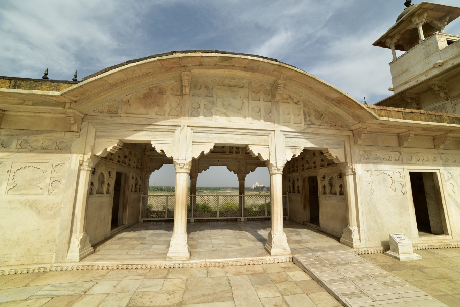 Enfin, la visite du Jehangiri Mahal est indissociable de celle du Fort Rouge dans son ensemble. Depuis les remparts du fort, la vue sur le Taj Mahal est l’une des plus iconiques de l’Inde. Elle permet de saisir le lien qui unit les deux monuments : c’est depuis ces appartements que l’empereur Shah Jahan, prisonnier à la fin de sa vie, contemplait le tombeau de son épouse. Visiter le Jehangiri Mahal, c’est donc compléter l’histoire en ajoutant la dimension du pouvoir, de la vie et de la tragédie familiale à la pureté du chef-d’œuvre qu’est le Taj Mahal.