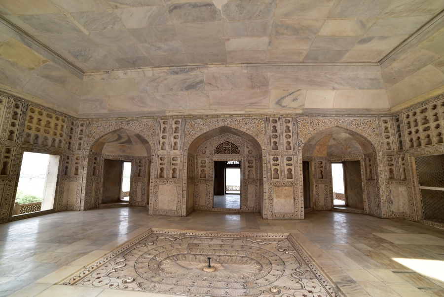 À l’intérieur du Shah Burj, on trouve une petite pièce jadis rafraîchie, l’été, par une cascade s’écoulant le long du marbre !