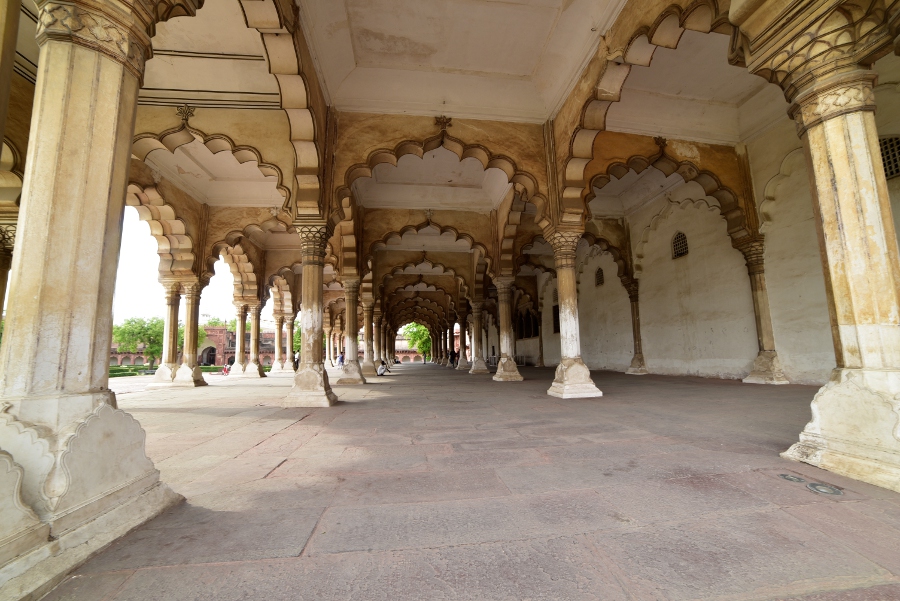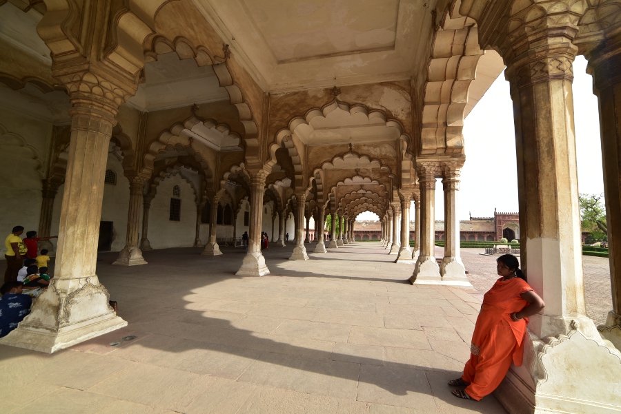 En redescendant l’escalier et en passant plusieurs corridors, on débouche naturellement sur le Diwan-i-Am, la grande salle des audiences publiques.