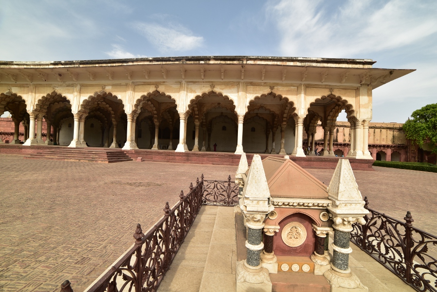 Ce fut plus tard ici que Shah Jahan fut emprisonné par son fils Aurangzeb. De là, il avait vue sur le tombeau de sa bien aimée. En contrebas, il pouvait observer les deux enceintes du palais, la première occupée par des douves et la deuxième… par des lions et des tigres. Il mourut ici en 1666.