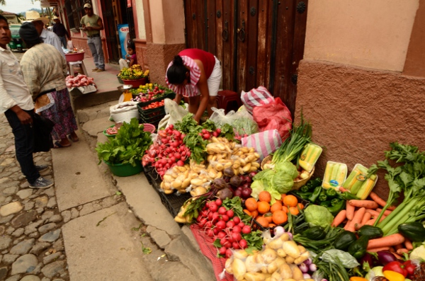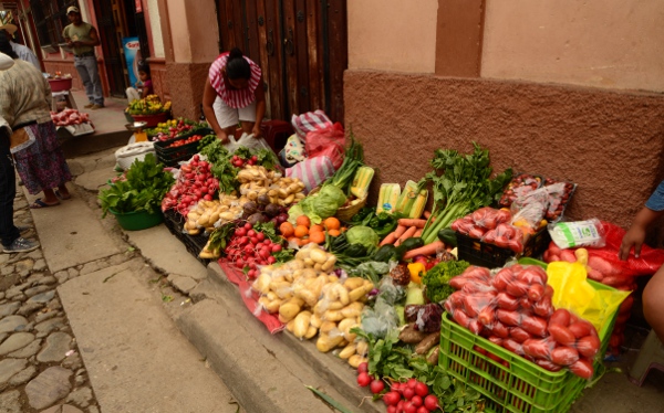 Dans les rues adjacentes, les trottoirs sont encombrés des fruits et légumes que les paysans des environs viennent vendre à la ville.