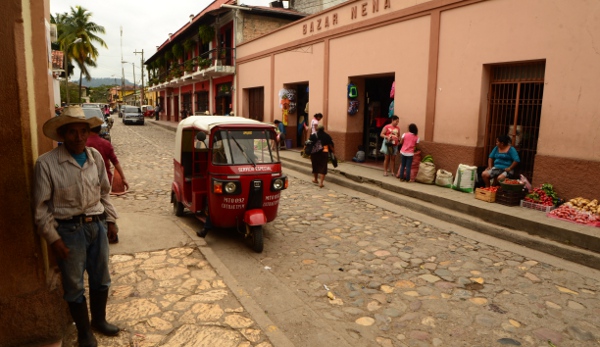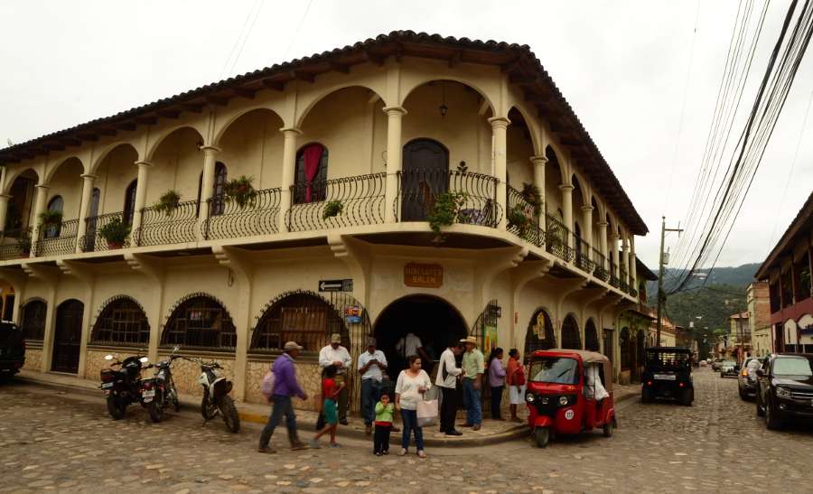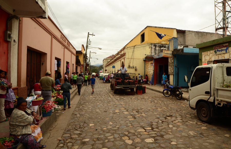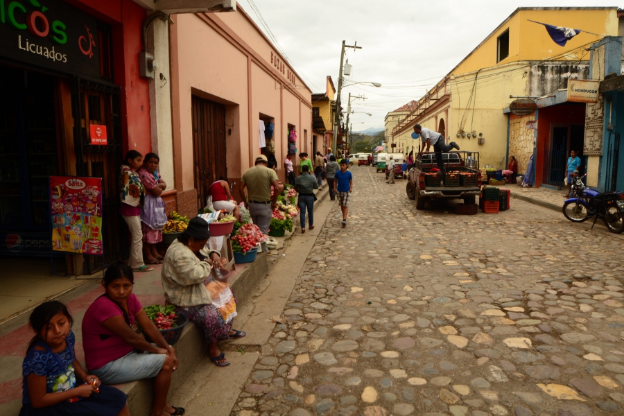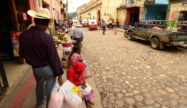 Sur les trottoirs, les files d’attente grossissent à l’entrée des banques gardées par des hommes en armes et aux bureaux d’aide sociale. Copán, malgré ses jolies rues pavées et maisons coquettes, reste pauvre. L’Amérique centrale.