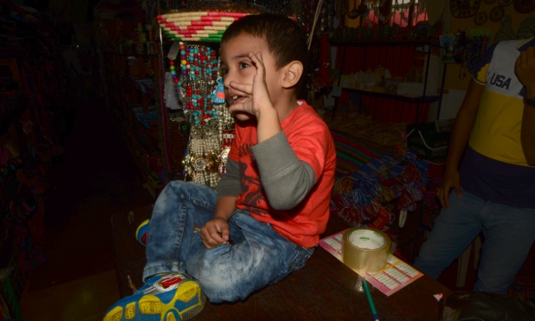 À deux pas de là, je rentre dans une boutique de souvenirs pour ramener une bricole du Honduras. Les gens me sourient. Pas beaucoup de touristes par ici. Un enfant posé sur le comptoir me fait la fête.