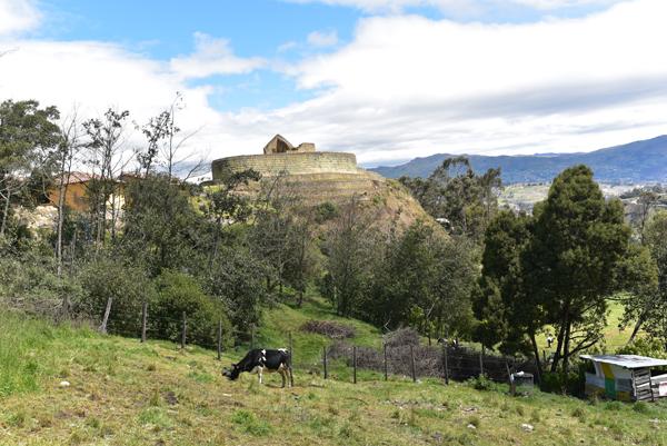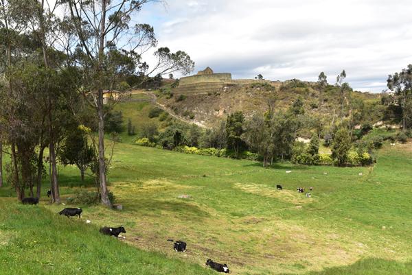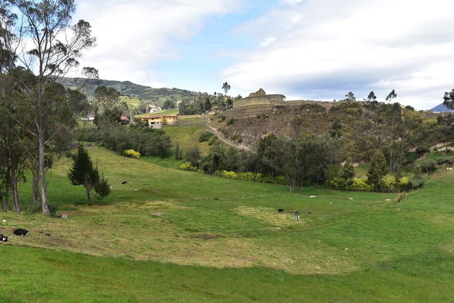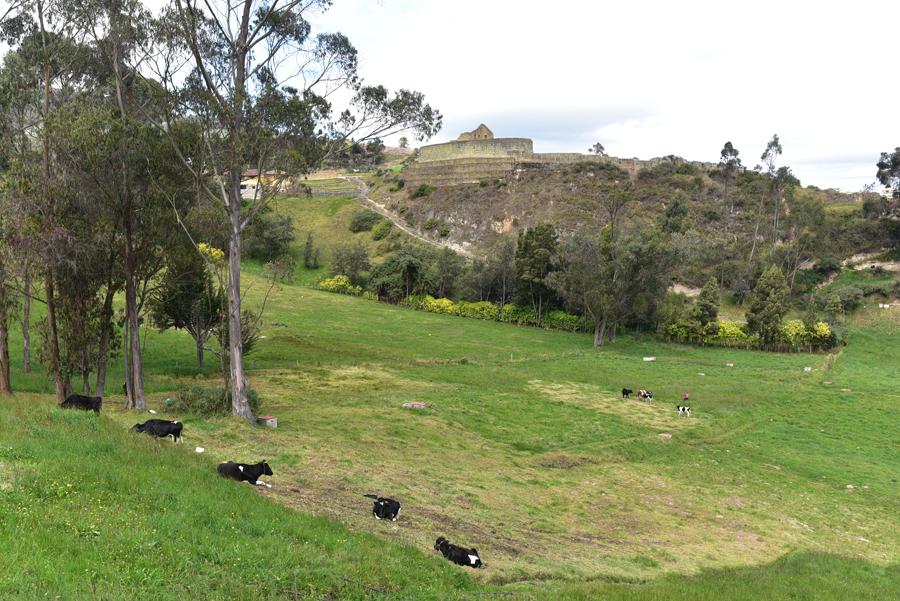 Depuis le chemin, la vue sur le temple du Soleil dominant le site d’Ingapirca est à couper le souffle. Au premier plan, des vaches paissent tranquillement sans être dérangées par les touristes. Et pour cause, peu d’entre eux poursuivent la visite jusqu’au rocher de l’Inca.
