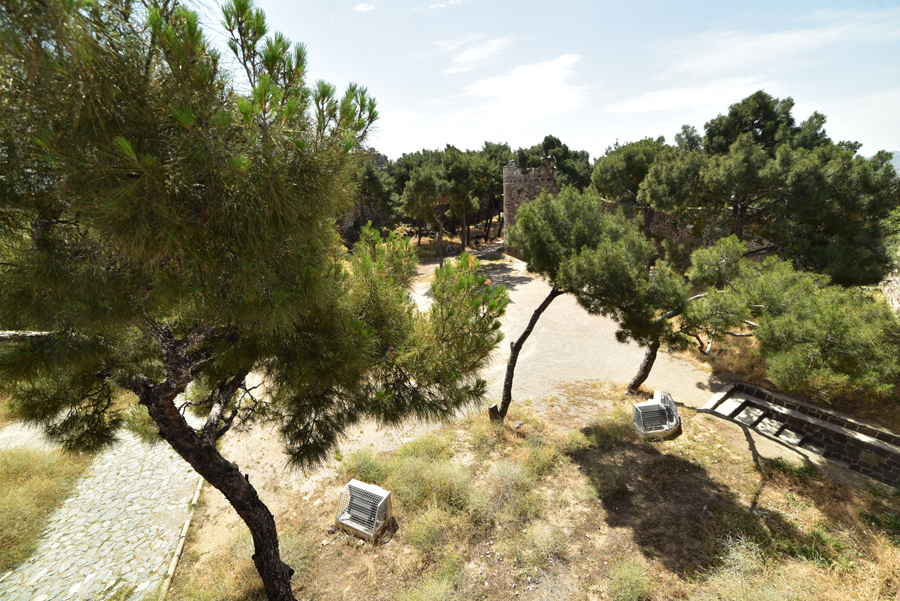De retour dans le jardin de Kadifekale, je cherche à grimper de nouveau sur la muraille. Bonne pioche ! En m’enfonçant un peu plus dans le jardin, je trouve une volée de marches qui me permet de me hisse sur un nouveau pan de l’ancienne citadelle romaine.