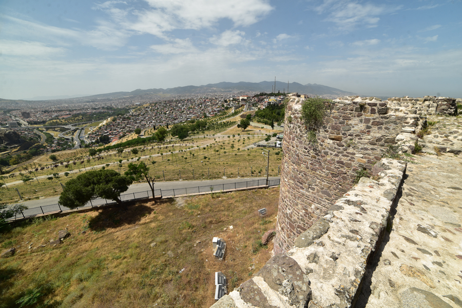 Pour cela, je fais appel à un taxi que je vais prendre à deux pas de mon hôtel. Après moult détours (compteur kilométrique oblige !), me voici donc sur les hauteurs de l’ancienne Smyrne. Les murailles de la citadelle se dressent là.