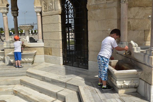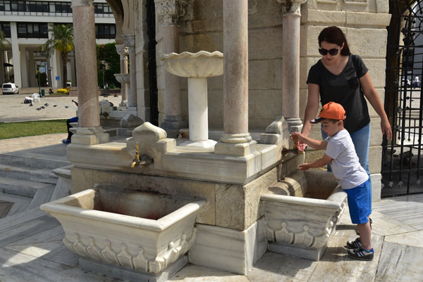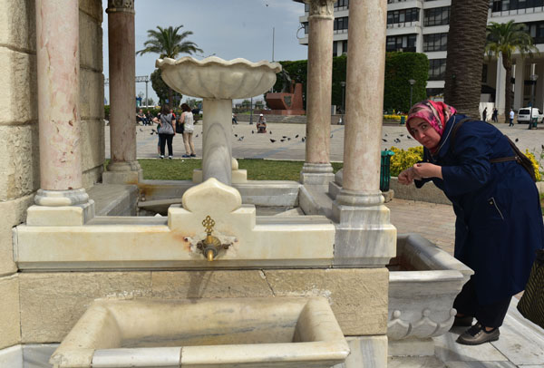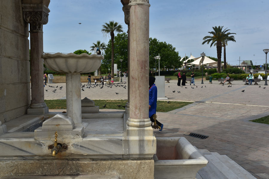 Jeudi 17 mai. Visiter Izmir ne nécessite pas de trop s’attarder dans la ville, car il ne reste quasiment plus rien de l’ancienne cité antique, hormis l’Agora, ni de l’ancienne ville turque qui a brûlé dans l’incendie de 1923. Toutefois, en poussant vers le front de mer, une fois ressorti du bazar, on arrive invariablement sur la place de la Tour de l’Horloge. Le rendez-vous romantique de tous les amoureux d’Izmir.