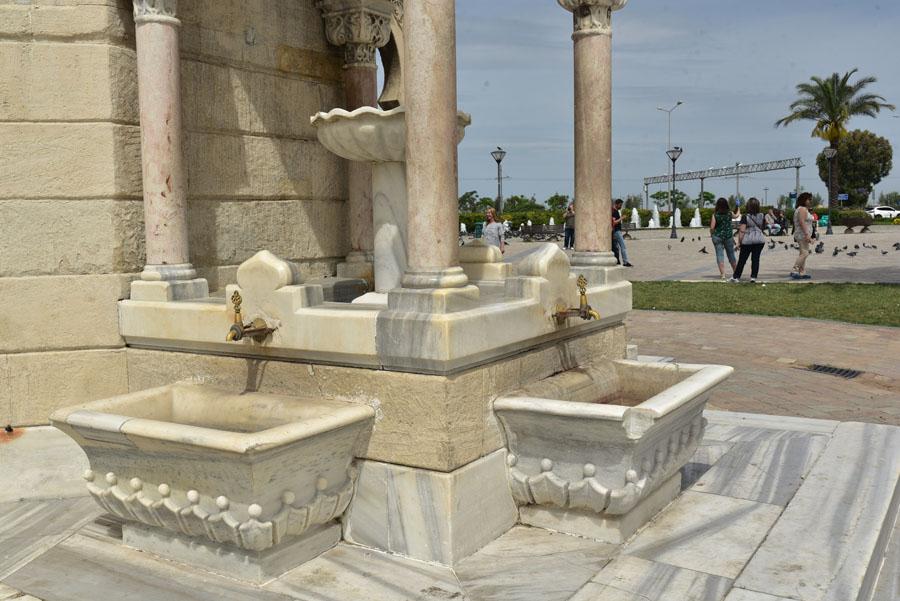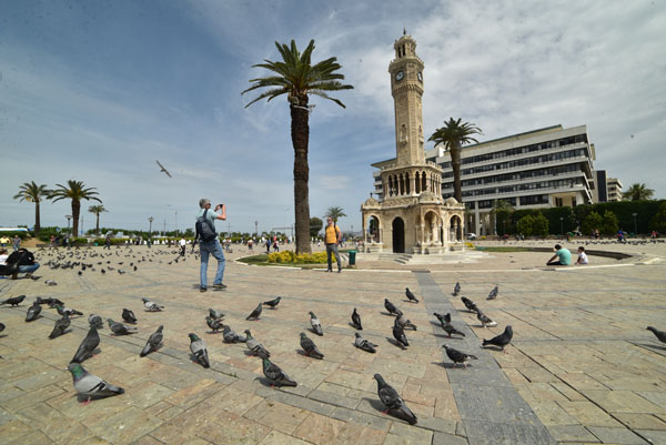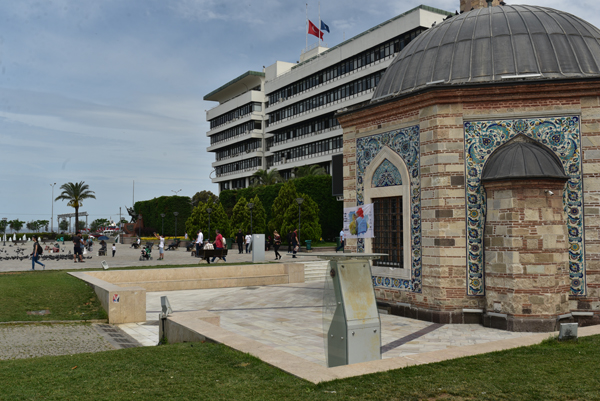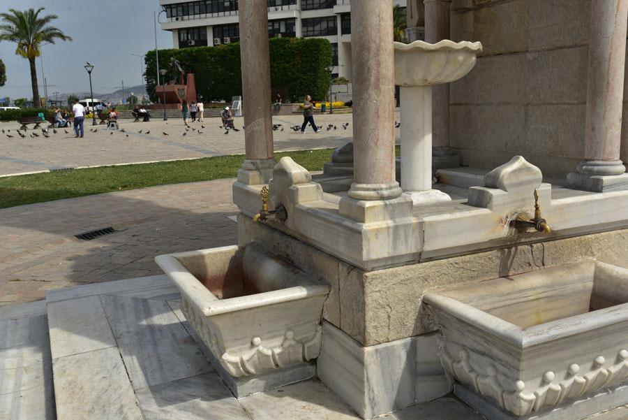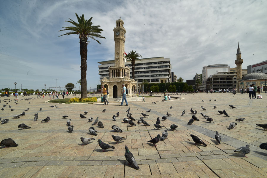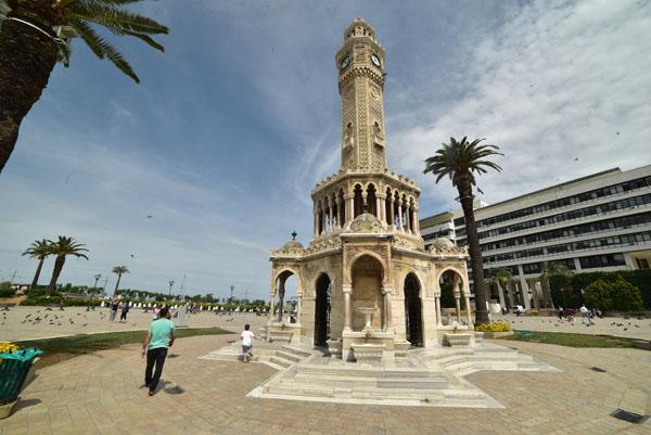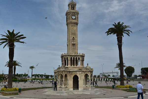 Face à l’hôtel de ville se dresse l’emblème d’Izmir – la tour de l’Horloge (Saat Kulesi) – construite en 1901. C’est l’un des seuls vestiges de la Smyrne ottomane. La tour Saat kulesi se dresse en face de la mer, elle accueille les passagers qui débarquent du port ou les touristes en promenade. Elle est à la fois un point de repère et un endroit fort apprécié pour y prendre des photos ou pour y faire une petite pause.