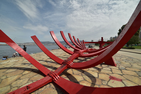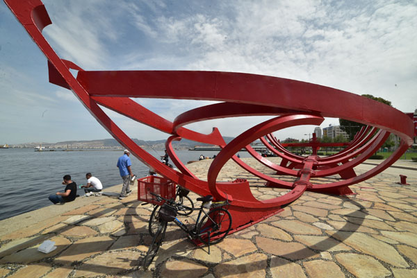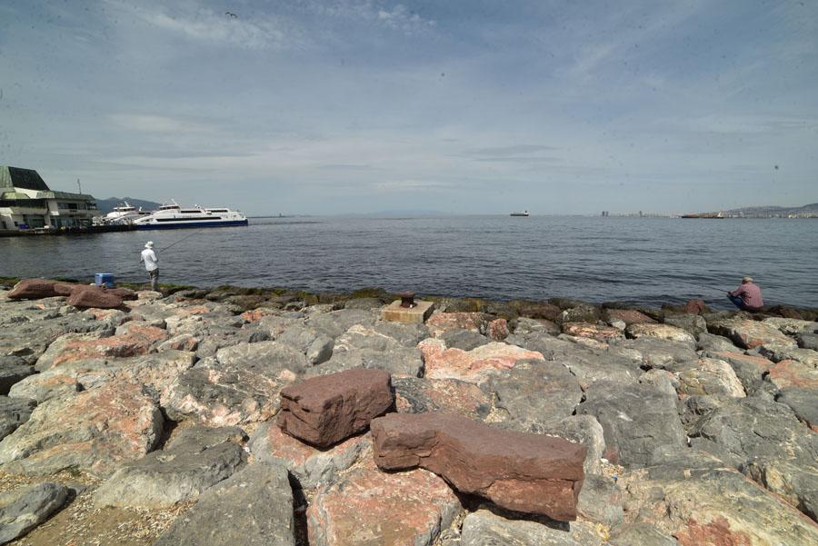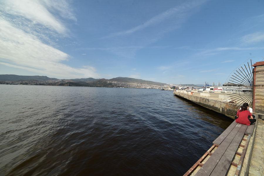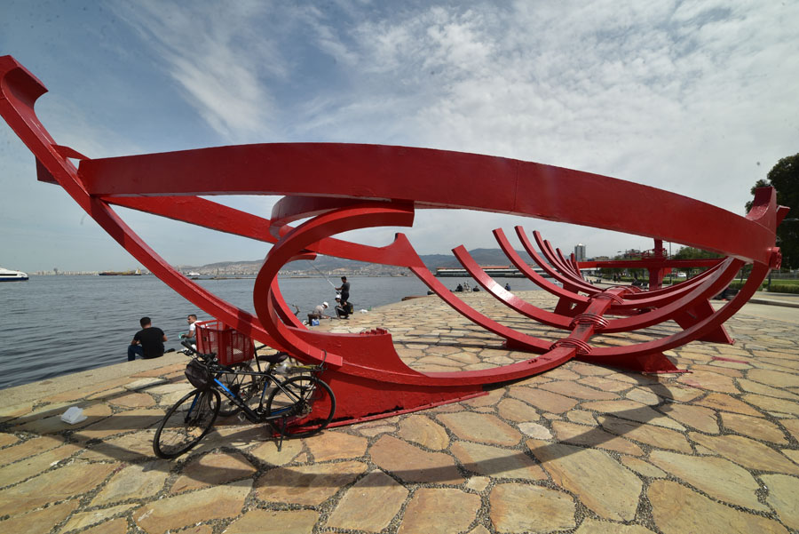 De l’autre côté de la place de la tour de l’Horloge, s’allongent les quais du port. Symboliquement, la carcasse métallique rouge d’un bateau a été exposée au public. Cette carcasse d’embarcation symbolise le lien fort que Smyrne entretient depuis trois millénaires avec la mer Méditerranée.