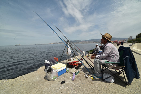 Des dizaines et des dizaines de pêcheurs s’étalent tout le long des quais, grinçant parfois les dents quand un tramway derrière eux ébranle les fondations du port. Pour permettre à cette petite population de passer un après-midi confortable, certains ont trouvé le moyen de clouer des planches au parapet du port.