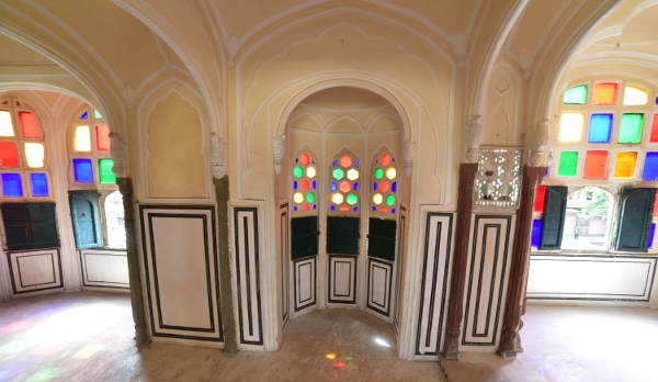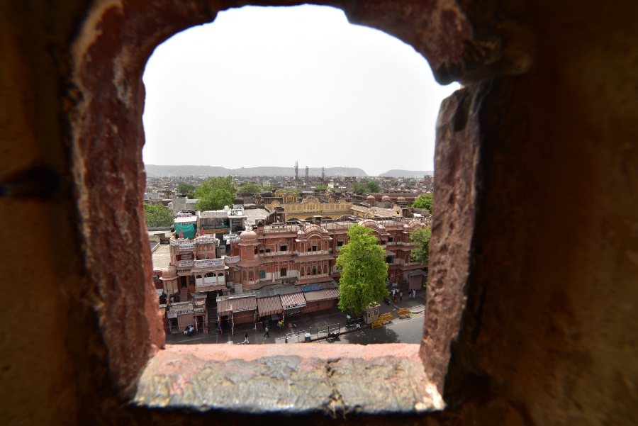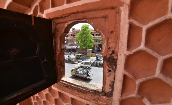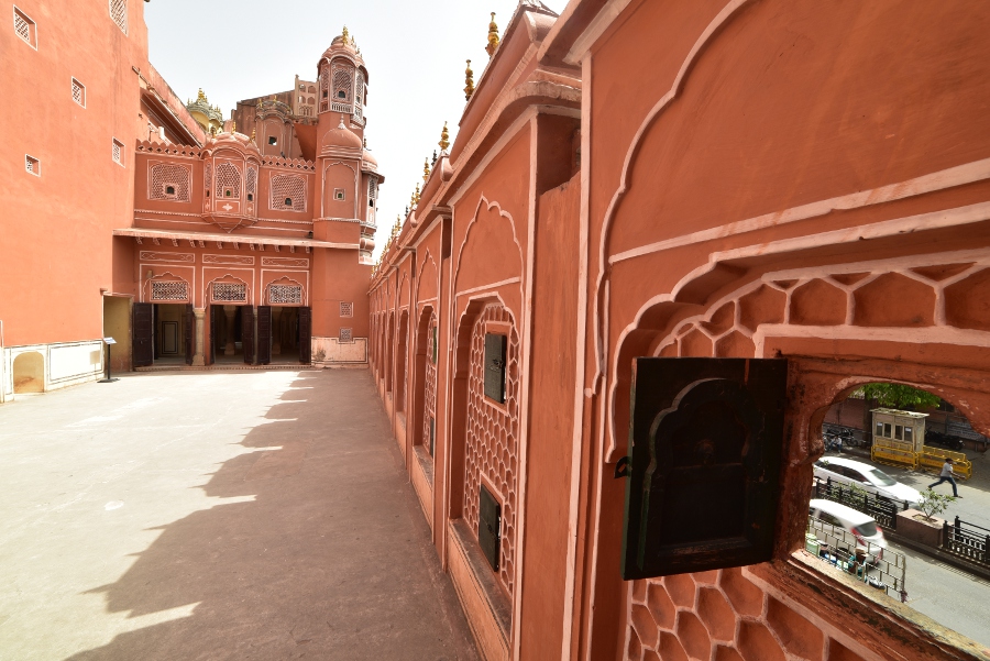 Construit en 1799, le palais était alors relié par un tunnel au City Palace. Il permettait aux femmes du harem d’observer la rue sans être vues.