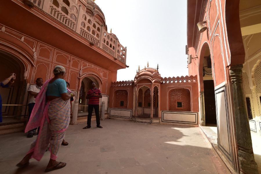 Si la façade est magnifique de l’extérieur, pénétrer à l’intérieur offre une perspective inversée. On découvre que le bâtiment est assez étroit et que ses pièces sont petites. Se tenir derrière ces fenêtres permet de comprendre le point de vue des femmes du zenana (quartier des femmes) sur le monde extérieur. La visite est rapide, mais la montée jusqu’au sommet est récompensée par une vue imprenable sur le chaos organisé de Jaipur, le City Palace et l’observatoire du Jantar Mantar.