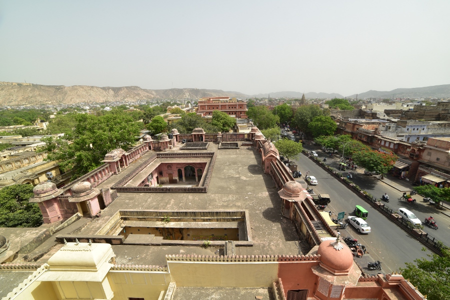 Côté cour du palais, on a une vue incroyable sur l’ensemble de la ville dont on distingue parfaitement les remparts encore intacts, les rues quadrillées et parfaitement rectilignes. La seule ville à l’urbanisme pensé et organisé de tout le Rajasthan.
