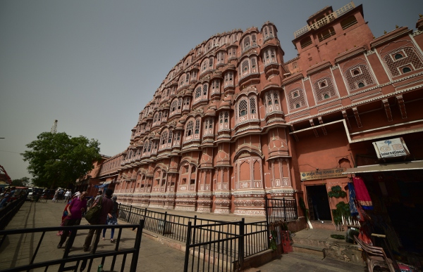 Dimanche 30 avril. Réveil matinal. L’ambiance sulfureuse de Jaipur. La décision de créer Jaipur à quelques kilomètres seulement de l’ancienne capitale-forteresse d’Amber fut prise par le maharaja Sawai Jai Songh II, au début du XVIIIe siècle. Difficile de croire qu’à la place de cette ville de près de 4 millions d’habitants, il n’y avait encore il y a 300 ans de ça que la plaine désertique du Rajasthan… C’est donc ce même maharaja qui fit élever à l’ombre des remparts le célèbre palais des vents. Le monument le plus emblématique de Jaipur.